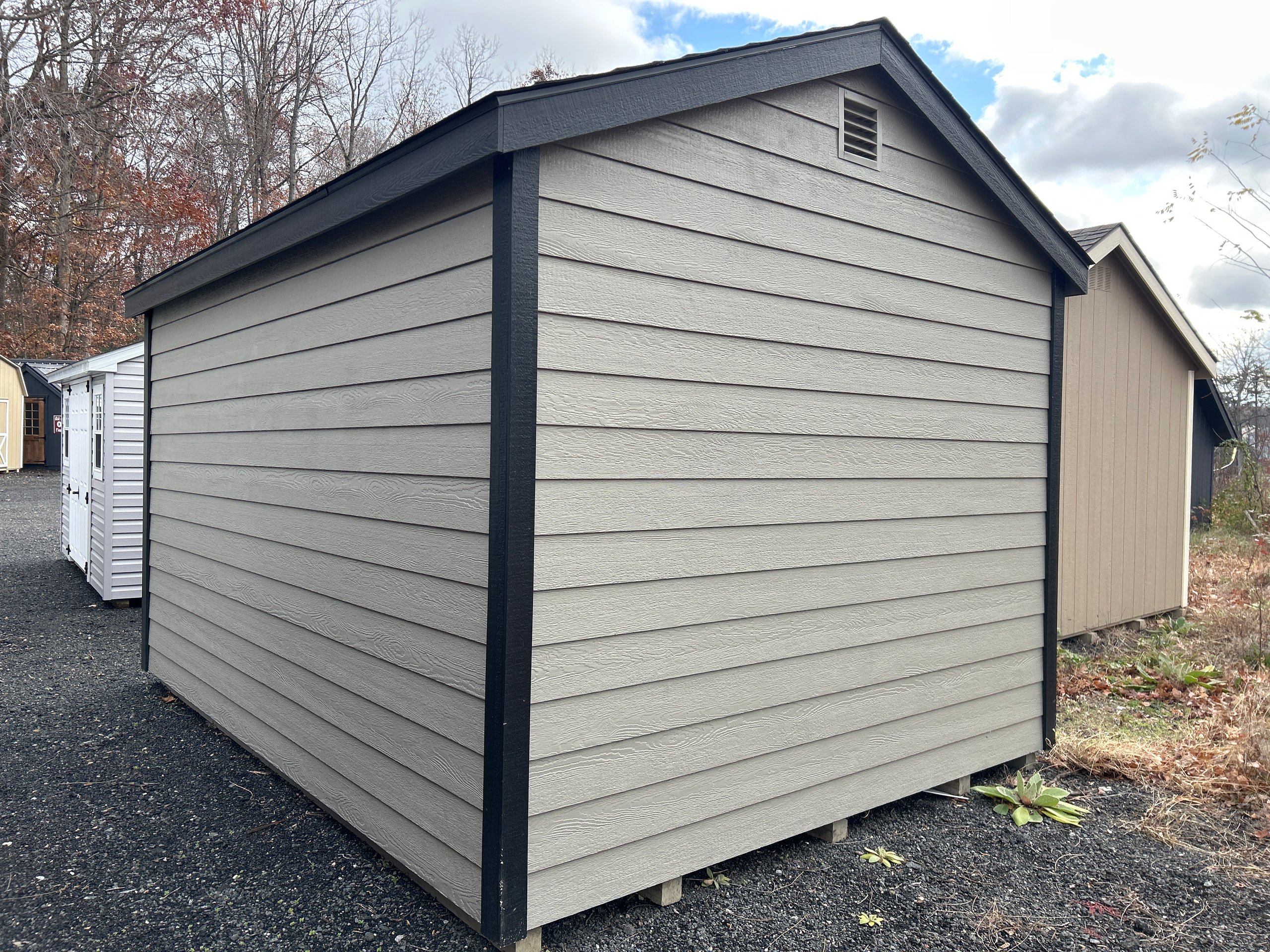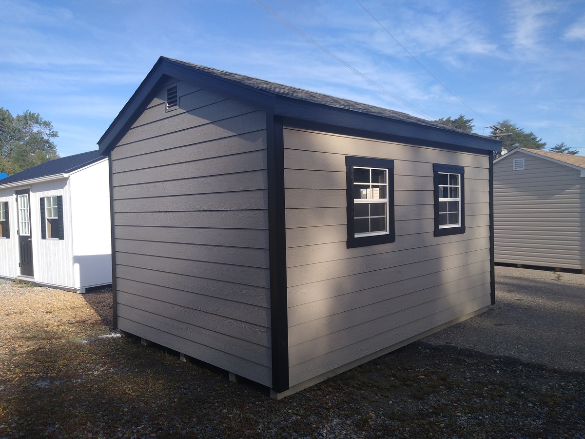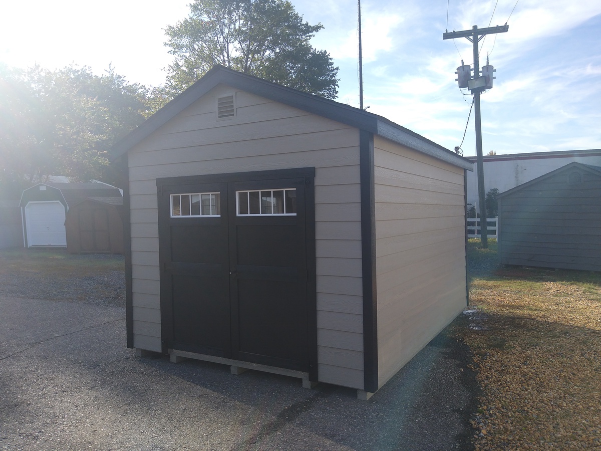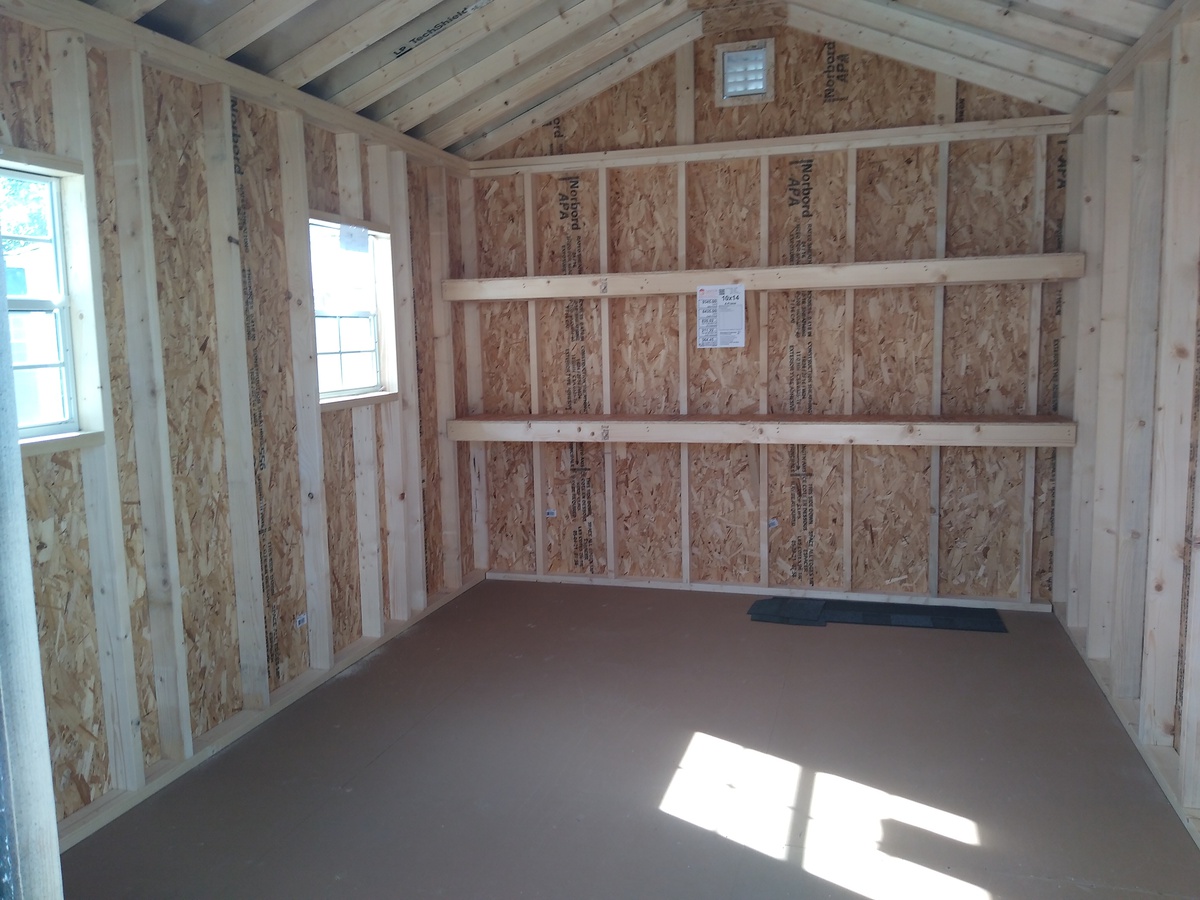 Introducing the Lap Sided A-Frame -A masterpiece of craftmanship by the Amish artisans. This 10×14 A-Frame is built to endure, offering exceptional quality and functionality for all your storage needs. The Lap siding provides superior durability while exuding timeless elegance in Clay, complemented by pristine Black Trim. The Charcoal colored dimensional shingles protect your belongings from the elements ensuring long-lasting reliability. With two doors for easy access, the interior boasts 2×4 stud wall framing, 2×4 rafter roof framing, and LP Tech Shield roof sheeting for added strength. The LP Prostruct Flooring, coupled with pressure-treated 2×4 floor joists ensures stability and longevity. invest in the A-Frame for a storage solution that’s built to last.