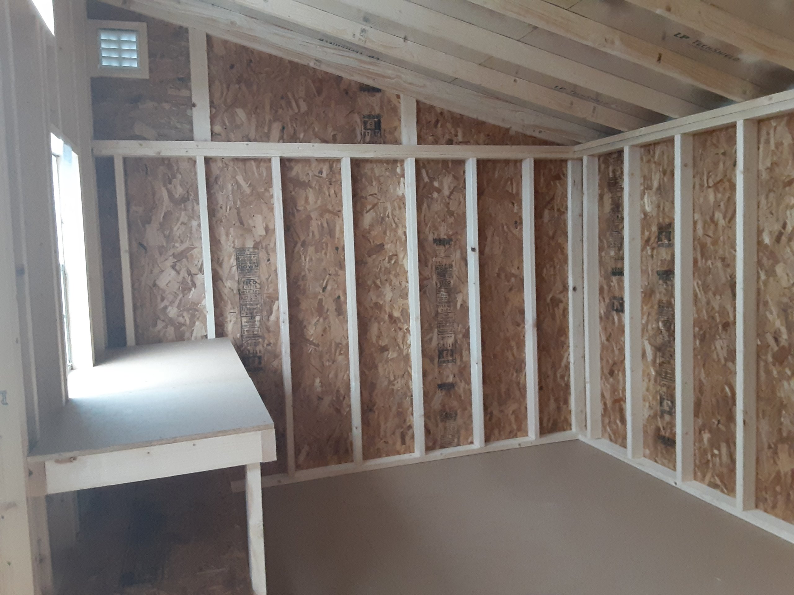 Wall Framing: 2×4 studs 16 inches on center