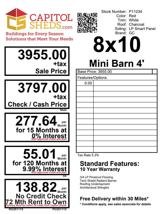 Style Name: 4′ Mini Barn