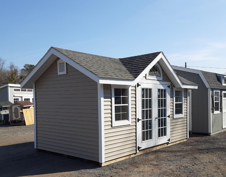 Introducing the Victorian A-Frame, a 10×16 masterpiece of storage elegance. Crafted by Amish artisans, its Vinyl Traditional siding in Clay blends seamlessly with a White trim, crowned by a Weatherwood roof. Architectural Shingles and Roof Felt ensure durability. Two windows invite natural light, complementing the full-glass double door with a wider entry for convenience. The interior boasts LP Prostruct Flooring on Pressure Treated 2×4 joists. With a Peak Dormer, Sunburst Window, and thoughtful extras like a 10′ Workbench and Shelf, this shed is a harmonious blend of functionality and aesthetics. Elevate your space with timeless craftsmanship.