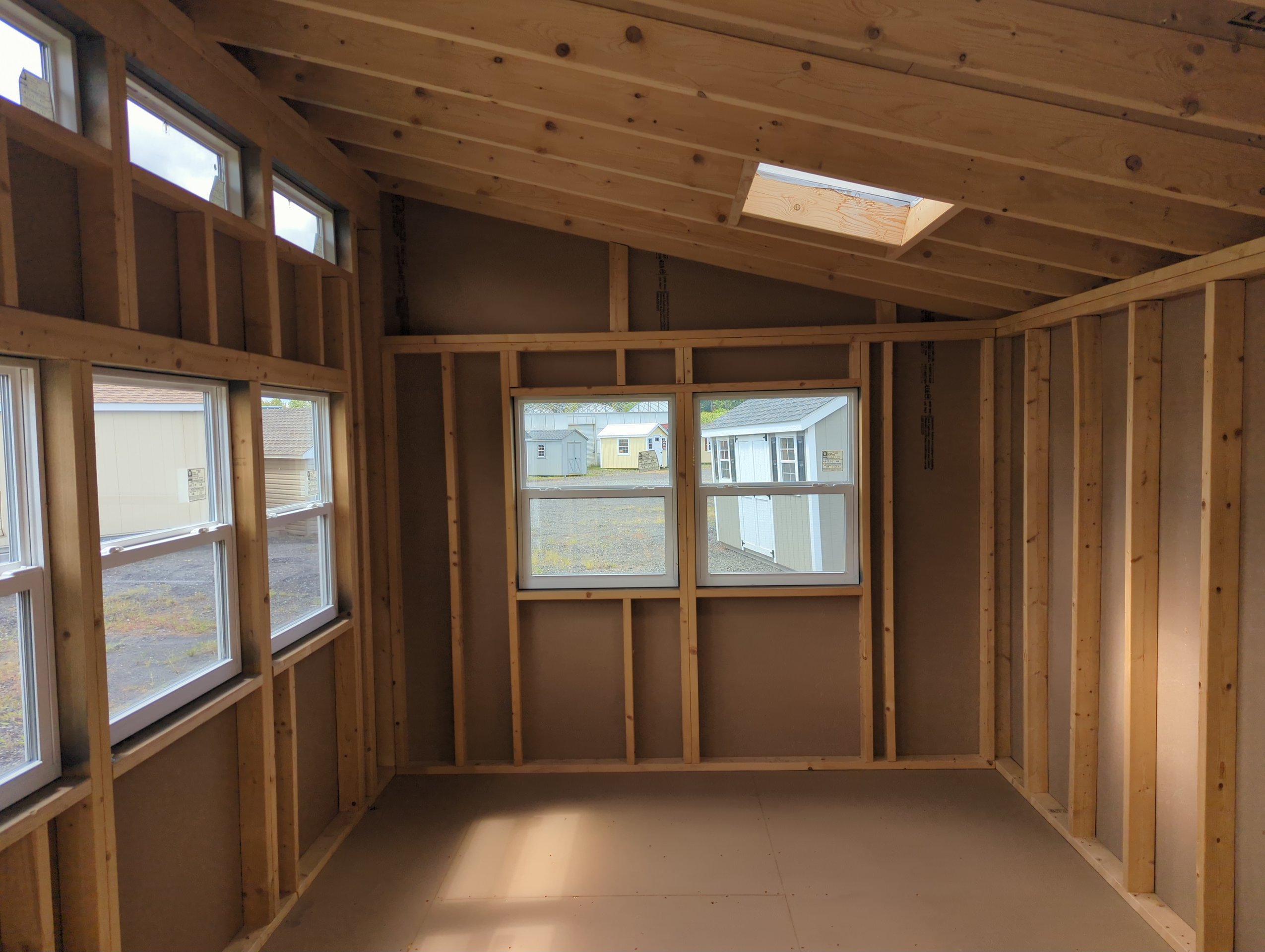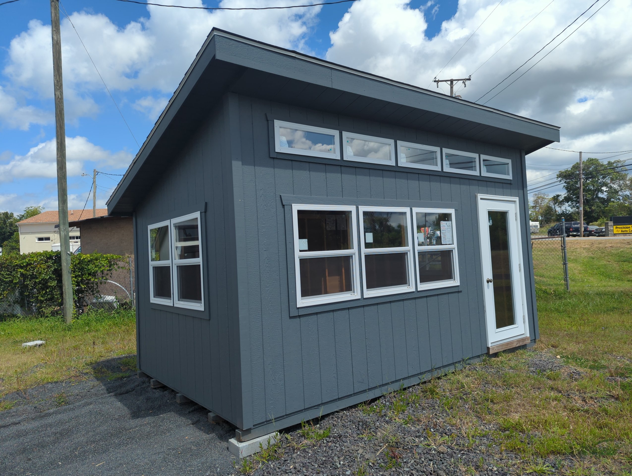 Introducing the Colonial Studio, a 10×16 masterpiece meticulously crafted by Amish artisans. Wrapped in sleek Dark Gray LP Smart Panel siding with matching trim, this storage shed exudes timeless elegance. The Virginia Slate roof, adorned with Dimensional Shingles and Roof Felt underlayment, ensures durability and style. Flooded with natural light through 8 windows, the interior boasts a Painted Insulated House Door with 15 Lite Glass, (8) 30×36 Kinro Insulated Windows, an Insulated Transom Window, and (2) 2’x2′ Skylights with ambient lighting. With 2×4 stud framing, LP Tech Shield roof sheeting, and LP Prostruct Flooring, it’s more than a shed; it’s a sanctuary.