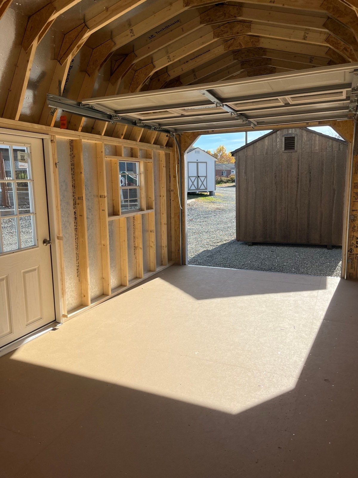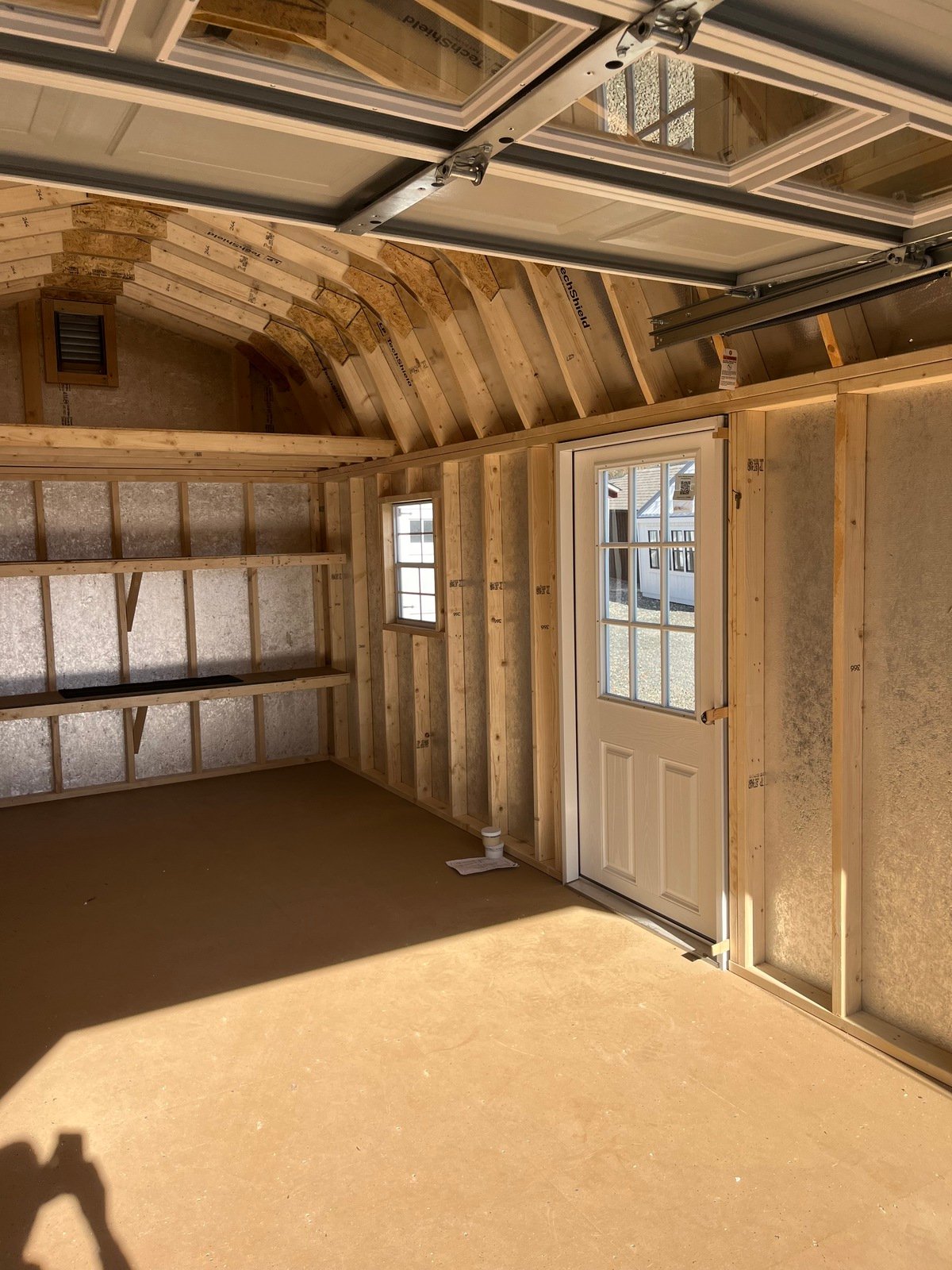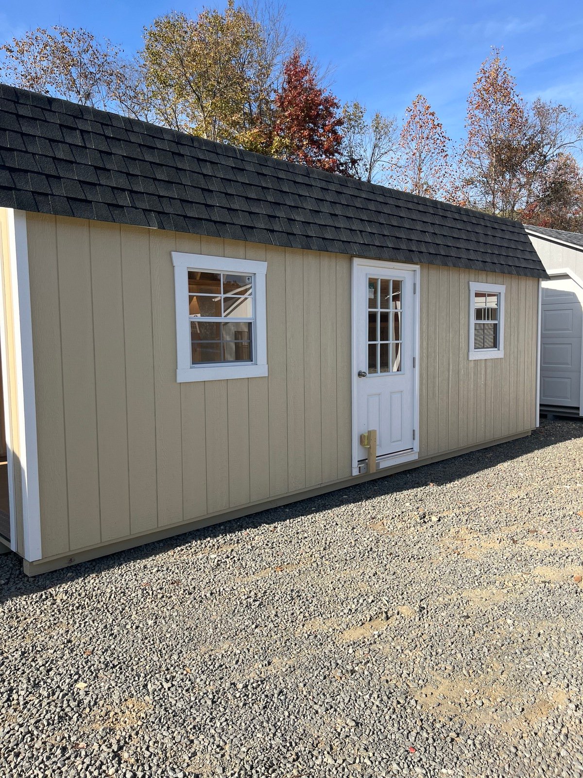 Style Name: Hi Barn Size: 10×22 Siding: LP Smart Panel Main Color: Beige Trim Color: White Roof Color: Charcoal Roofing: Architectural Shingles Roofing Underlayment: Roof Felt Paper Number of Windows: 2 Number of Doors: 3 Wall Framing: 2×4 studs 16 inches on center Roof Framing: 2×4 rafters 16 inches on center Roof Sheeting: LP Tech Shield Flooring: LP T&G Prostruct Flooring Floor Joists: Pressure Treated 2×4 joists 16 inches on center   Included Upgrades: Garden Vents Ridge Vent 6” higher walls 8×7 Garage door House door with 9-Lite Glass 16” Shelves 4’ Loft  8” Floor Joist Upgrade