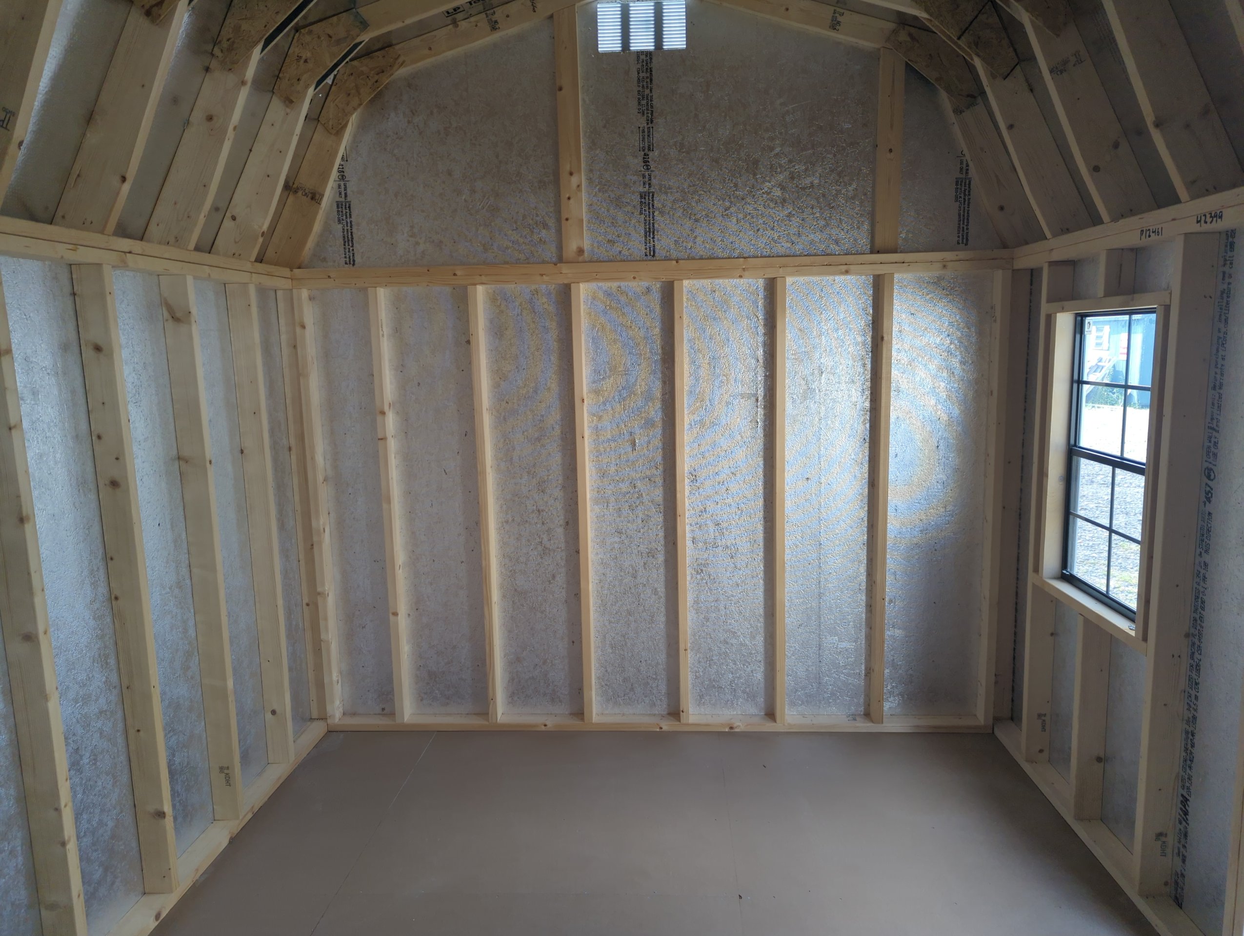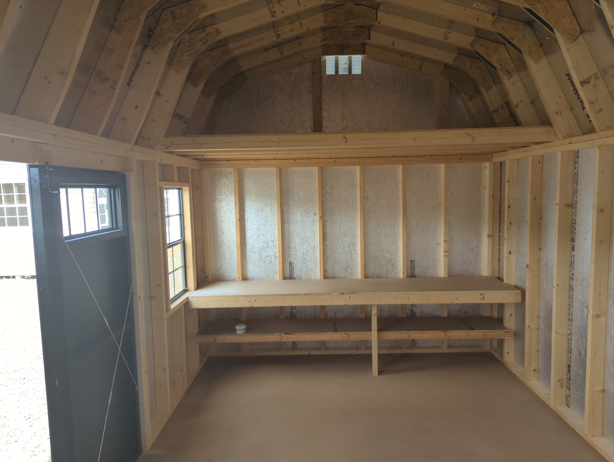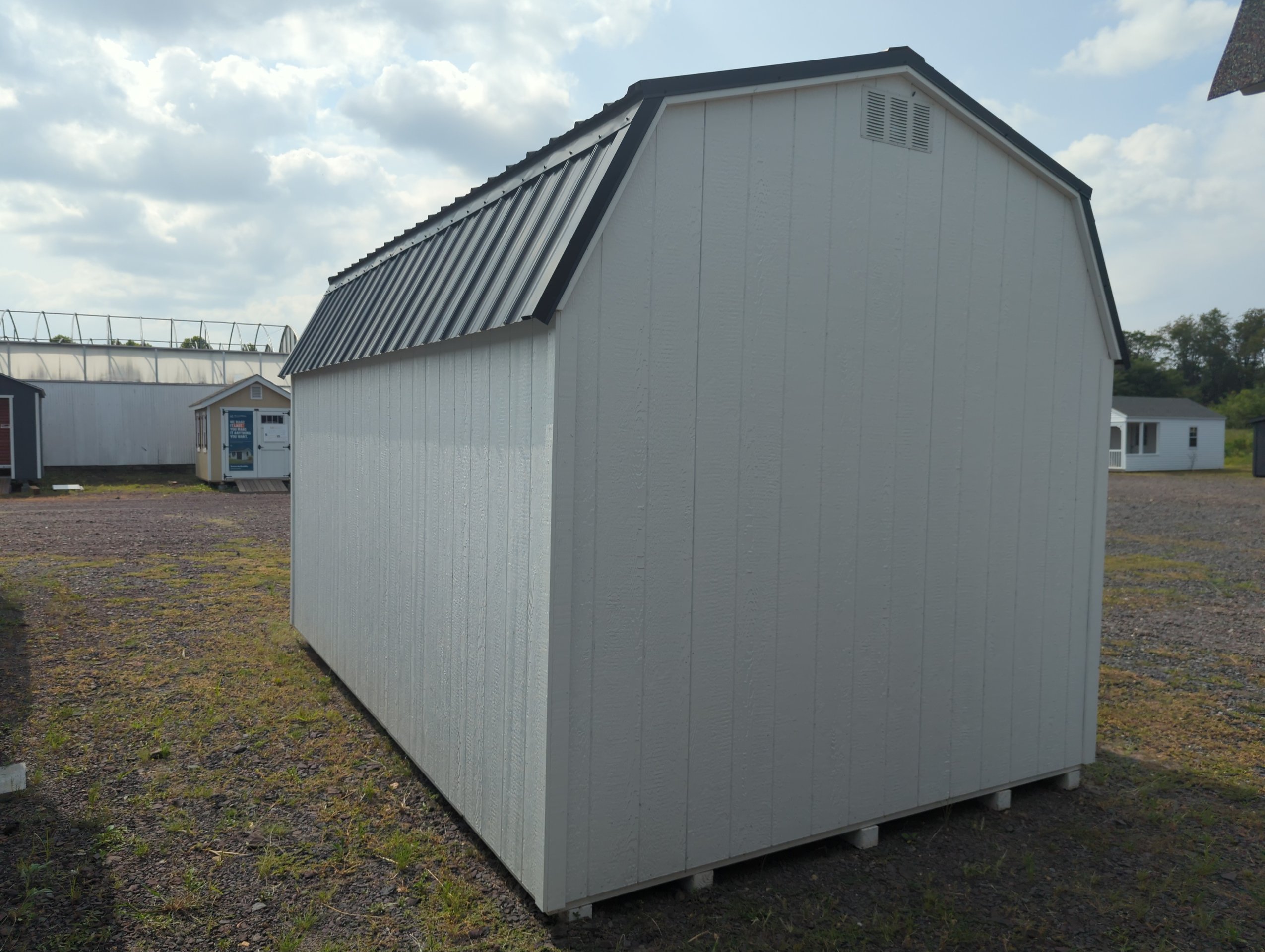 Discover timeless craftsmanship with this Amish-built 10×16 Dutch Barn. Finished in crisp white LP Smart Panel siding with matching trim and a sleek black metal roof, it blends classic charm with long-lasting durability. Built with 2×4 framing and LP ProStruct flooring, it offers dependable strength throughout. Enjoy enhanced functionality with included upgrades: a spacious loft, handy shelf, sturdy workbench, larger black-trim windows, and a stylish black transom window in the door. With two windows for natural light and smart interior storage, this barn delivers exceptional quality and everyday convenience for your backyard.