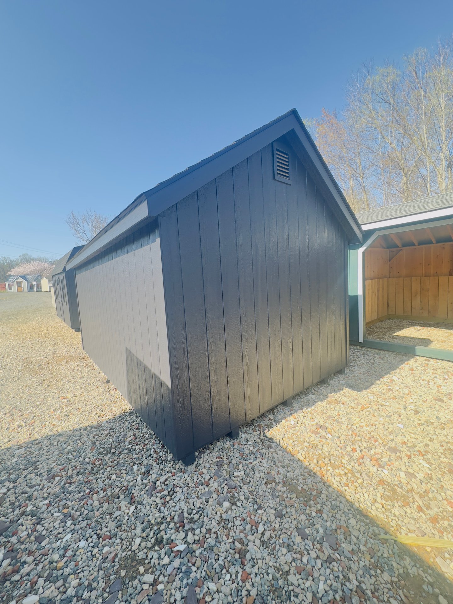 The 10×16 Kingston shed stands out with elevated design and premium upgrades. Crafted with LP Smart Panel siding in Mopboard and topped with a charcoal architectural shingle roof, it
