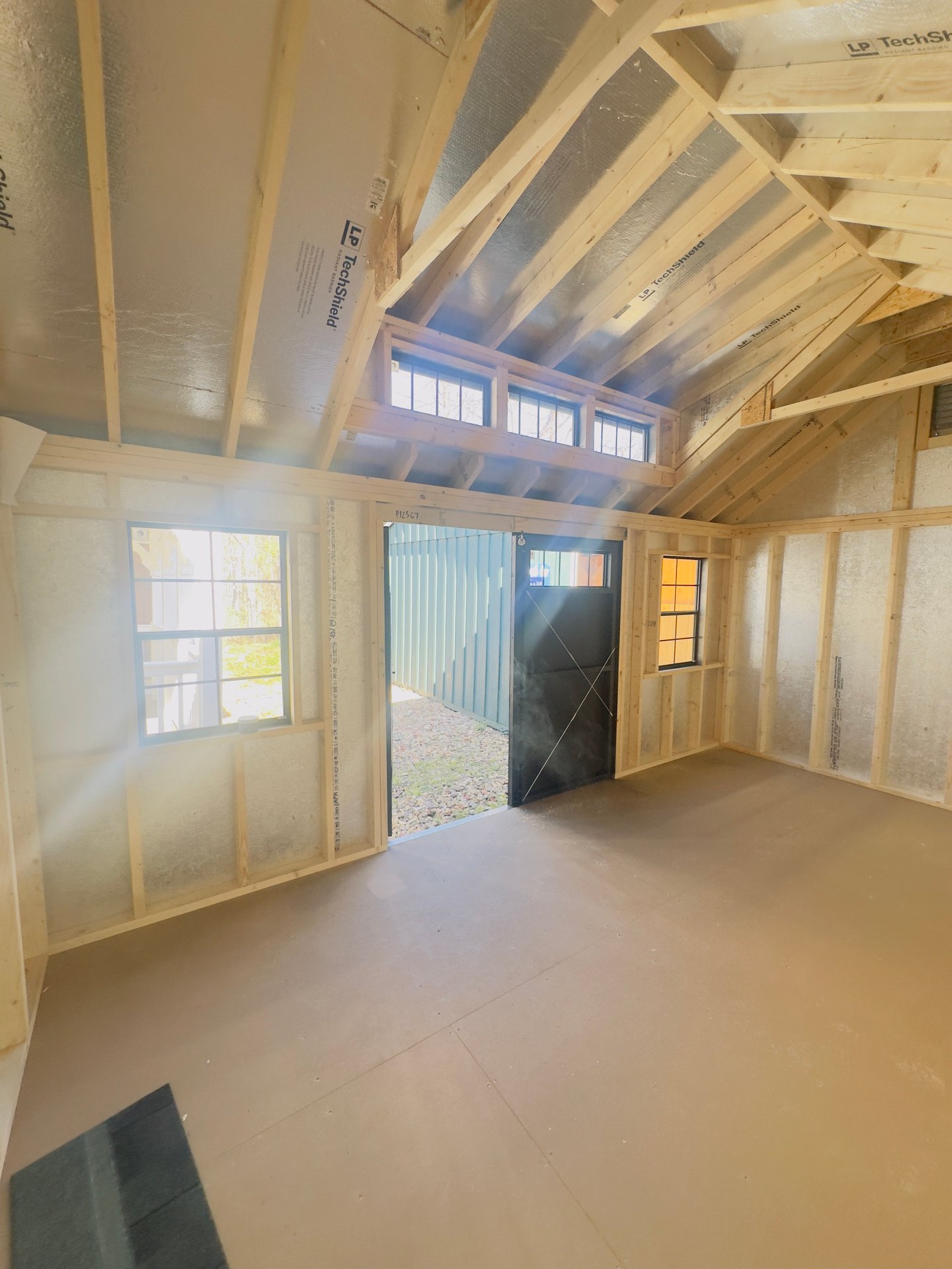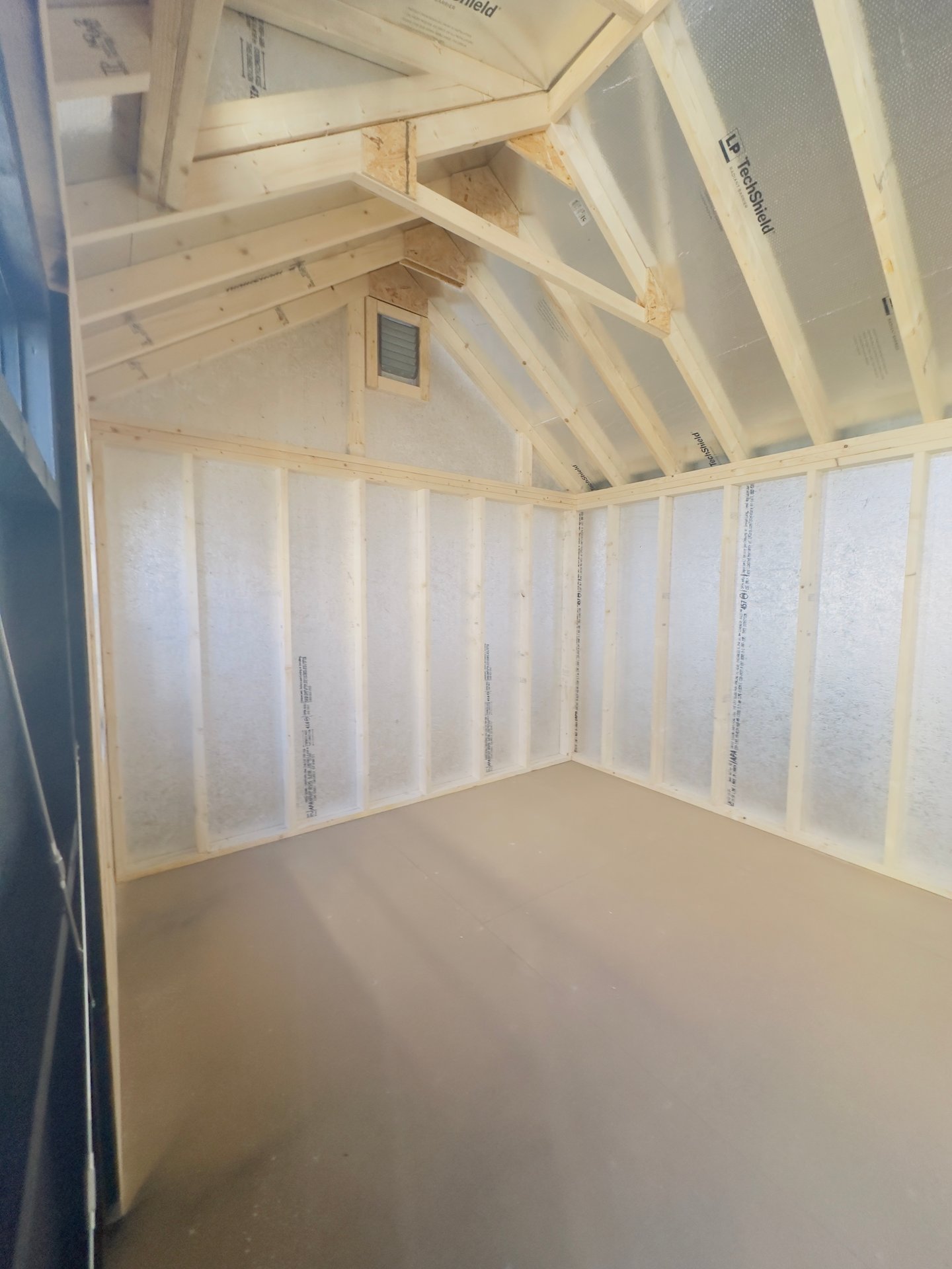 light. Deluxe gable vents improve airflow, while a 6′ double wood door ensures easy access. Finished with durable 3/4″ LP Prostruct flooring, this shed offers exceptional style, functionality,