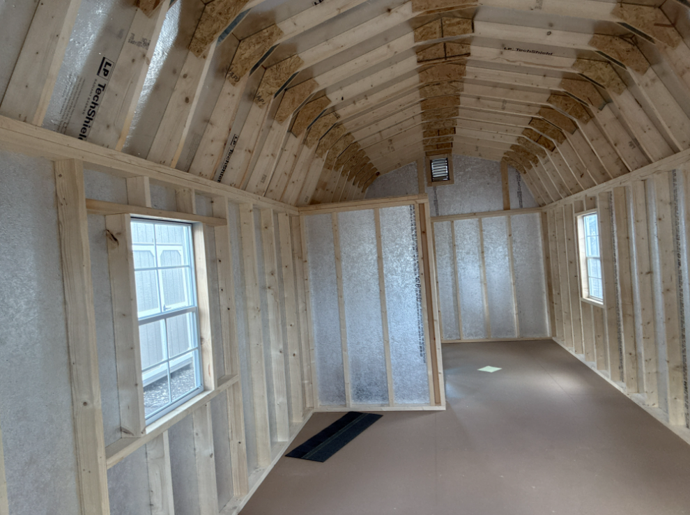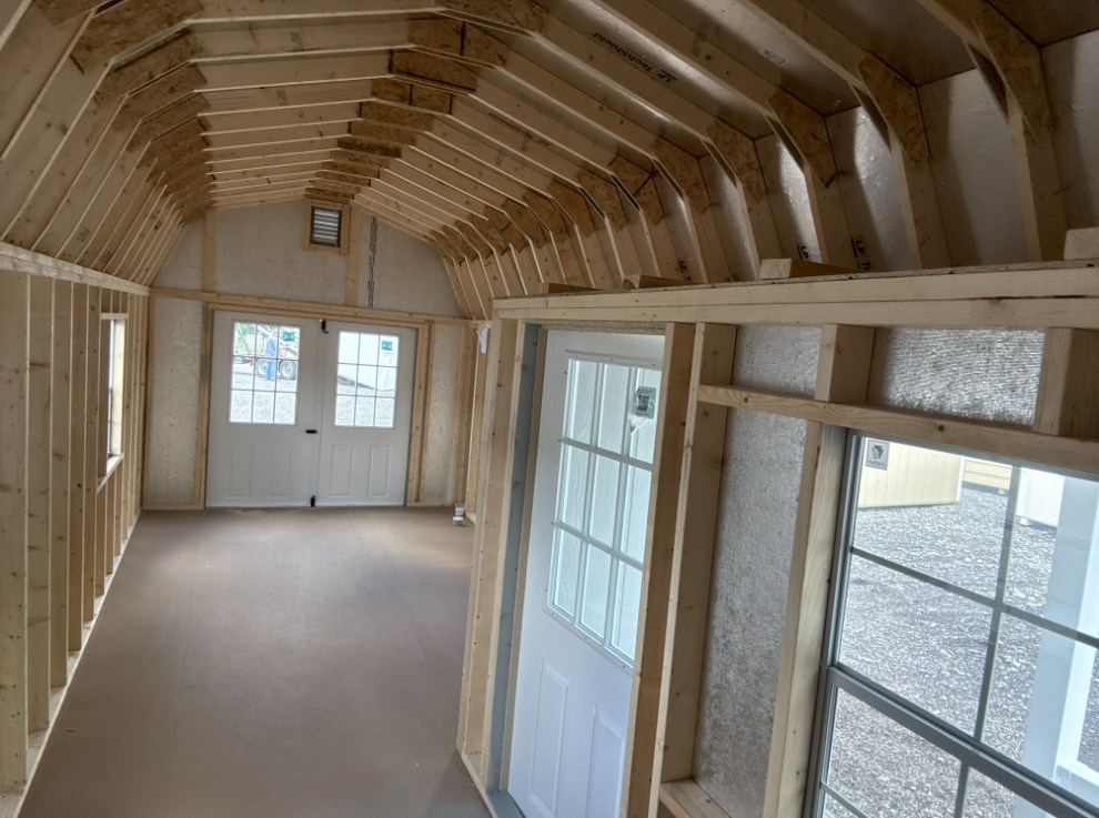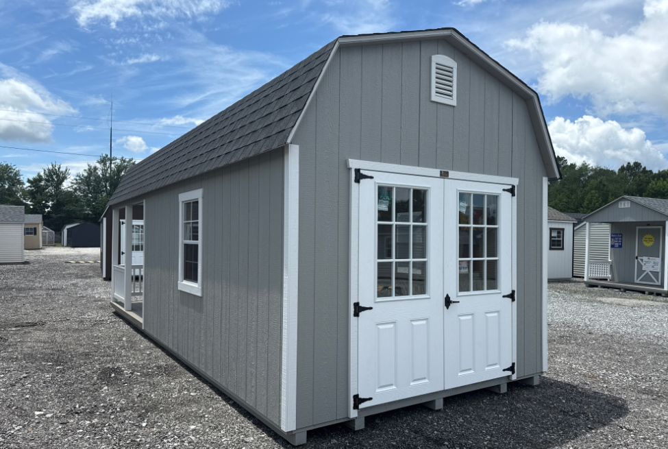 Introducing the Traditional Dutch Barn -A masterpiece of craftmanship by the Amish artisans. This 10×25 Dutch Barn is built to endure, offering exceptional quality and functionality for all your storage needs. The Dutch Barn siding provides superior durability while exuding timeless elegance in light Gray, complemented by pristine White. The Charcoal colored dimensional shingles protect your belongings from the elements ensuring long-lasting reliability. With 6’FG Double Door and 3’SD for easy access, the interior boasts 2×4 stud wall framing, 2×4 rafter roof framing, and LP Tech Shield roof sheeting for added strength. The LP Prostruct Flooring, coupled with pressure-treated 2×4 floor joists ensures stability and longevity. invest in the Dutch Barn for a storage solution that’s built to last.