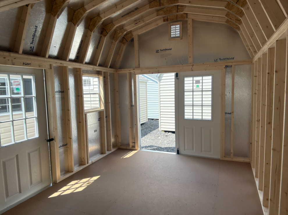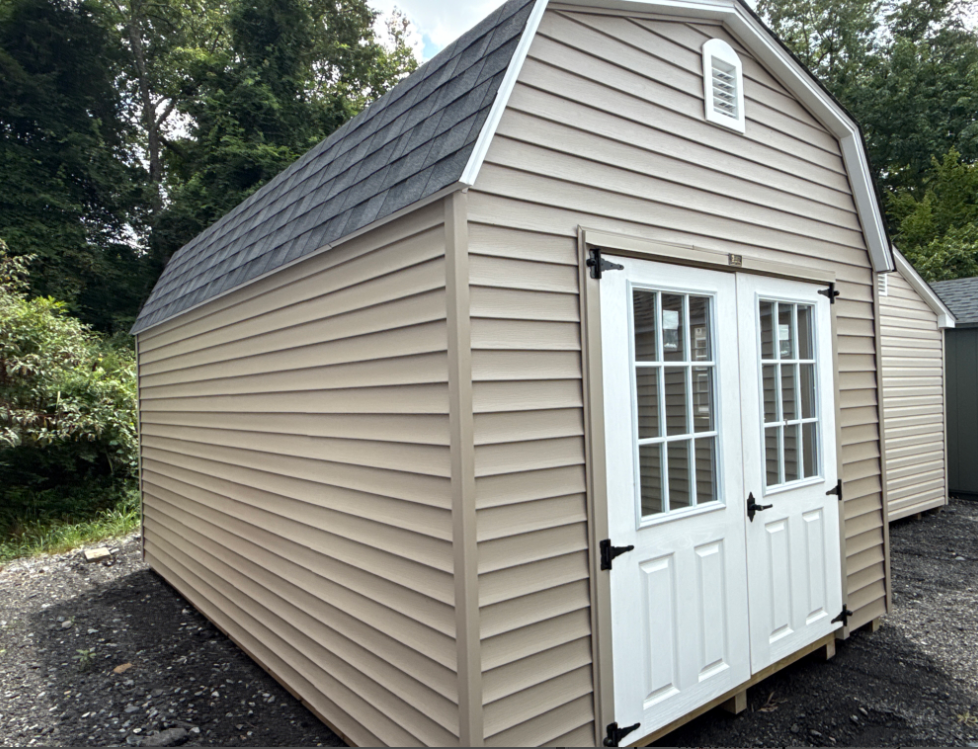 Maximize your storage space in style with this 10×20 Dutch Barn, handcrafted by Amish builders for superior quality and durability. Featuring clay vinyl siding, matching trim, and a black dimensional shingle roof, this shed blends seamlessly with any property. Built with 2×4 framing 16″ on center, LP Prostruct flooring, and a Tech Shield roof, it’s made to last. Enjoy upgraded features like a 9-lite fiberglass doors, garden vents, two windows, two 16″ shelves, and a 4′ loft—perfect for organizing tools, seasonal décor, and more. Smart, stylish, and built to endure—this is storage done right.