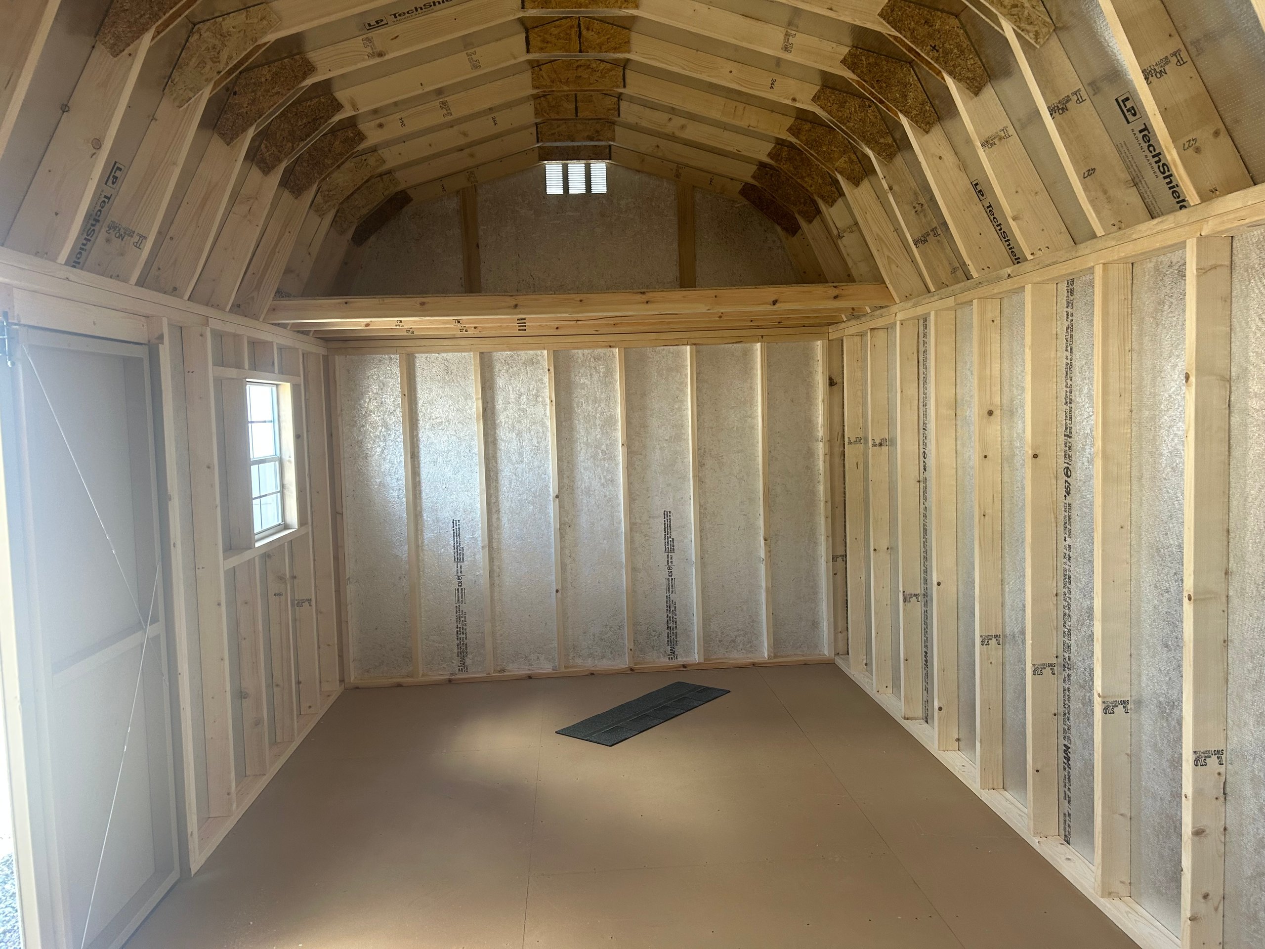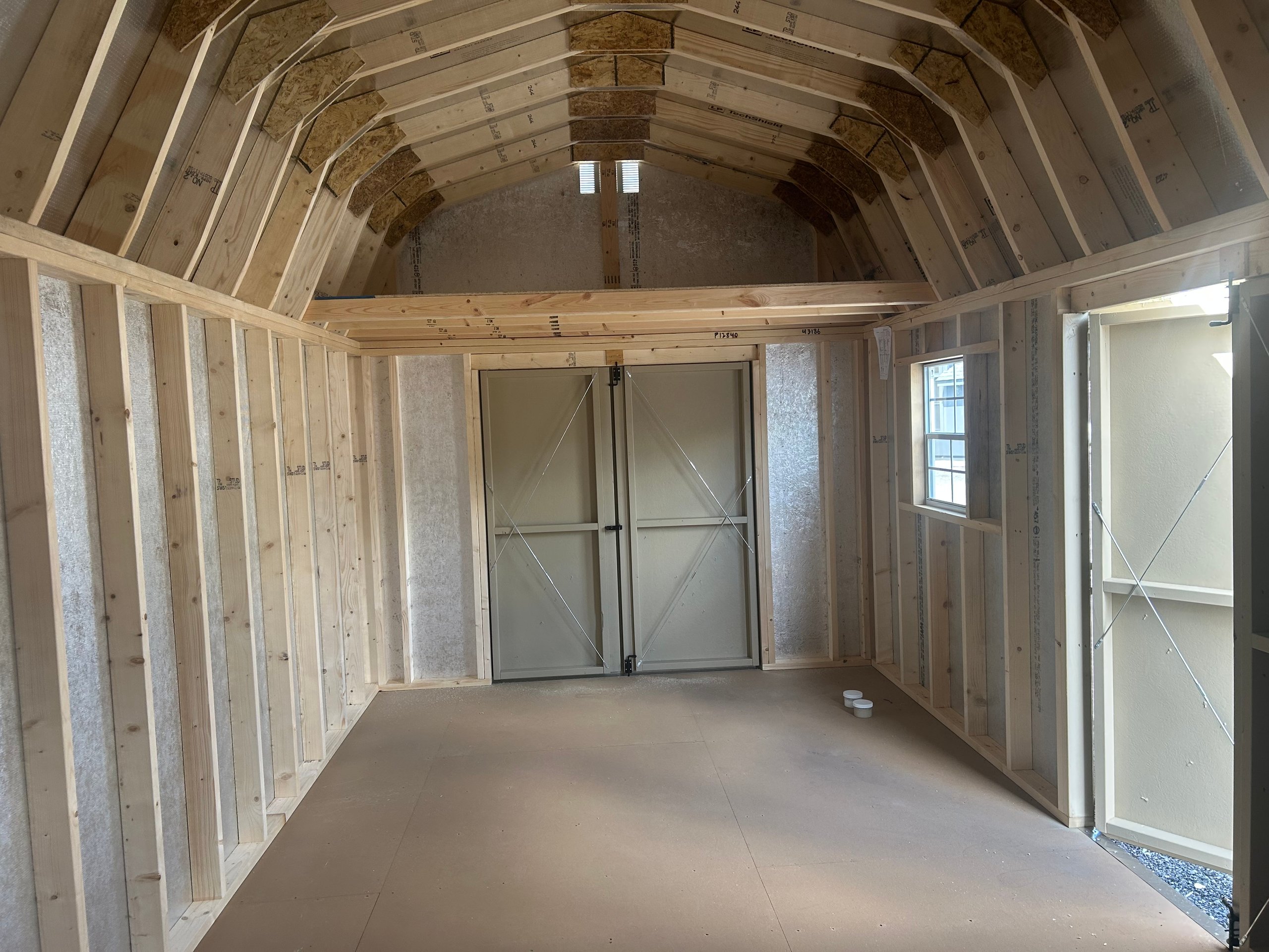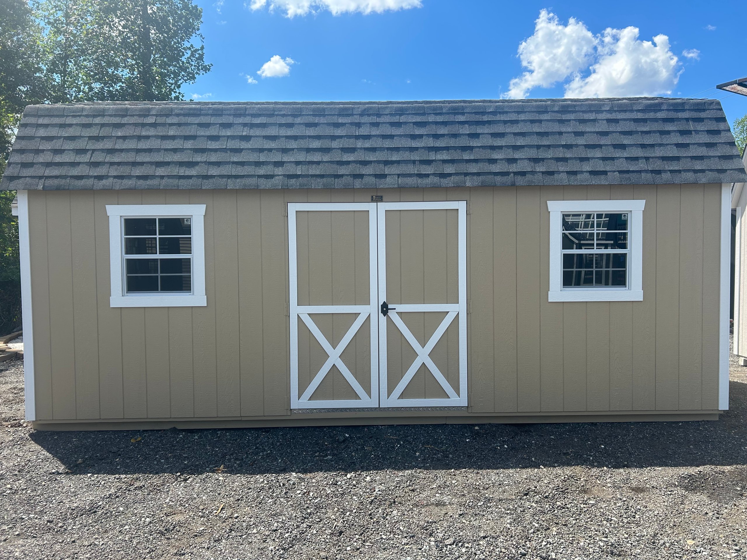 This 10×20 Amish-built Dutch Barn offers timeless style with exceptional storage capacity. Featuring durable Smart Panel siding in Tan with crisp White trim and a Pewter Gray dimensional shingle roof, it’s built to last. The structure includes two windows, two doors (with an added 5′ double door upgrade), and two spacious 4′ x 10′ lofts for maximizing overhead storage. Crafted with 2×4 studs and rafters 16″ on center, LP Tech Shield roof sheathing, and LP Prostruct flooring over pressure-treated joists, this shed delivers strength and functionality. Perfect for storing equipment, seasonal items, or transforming into a workshop or hobby space.
