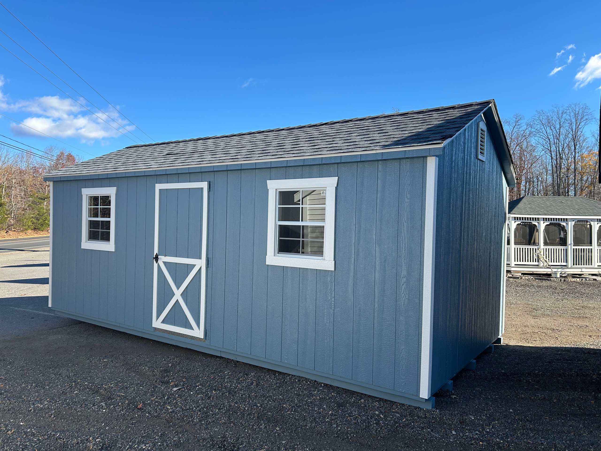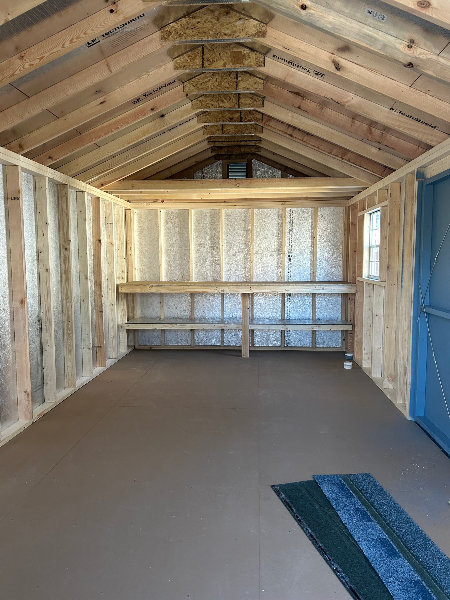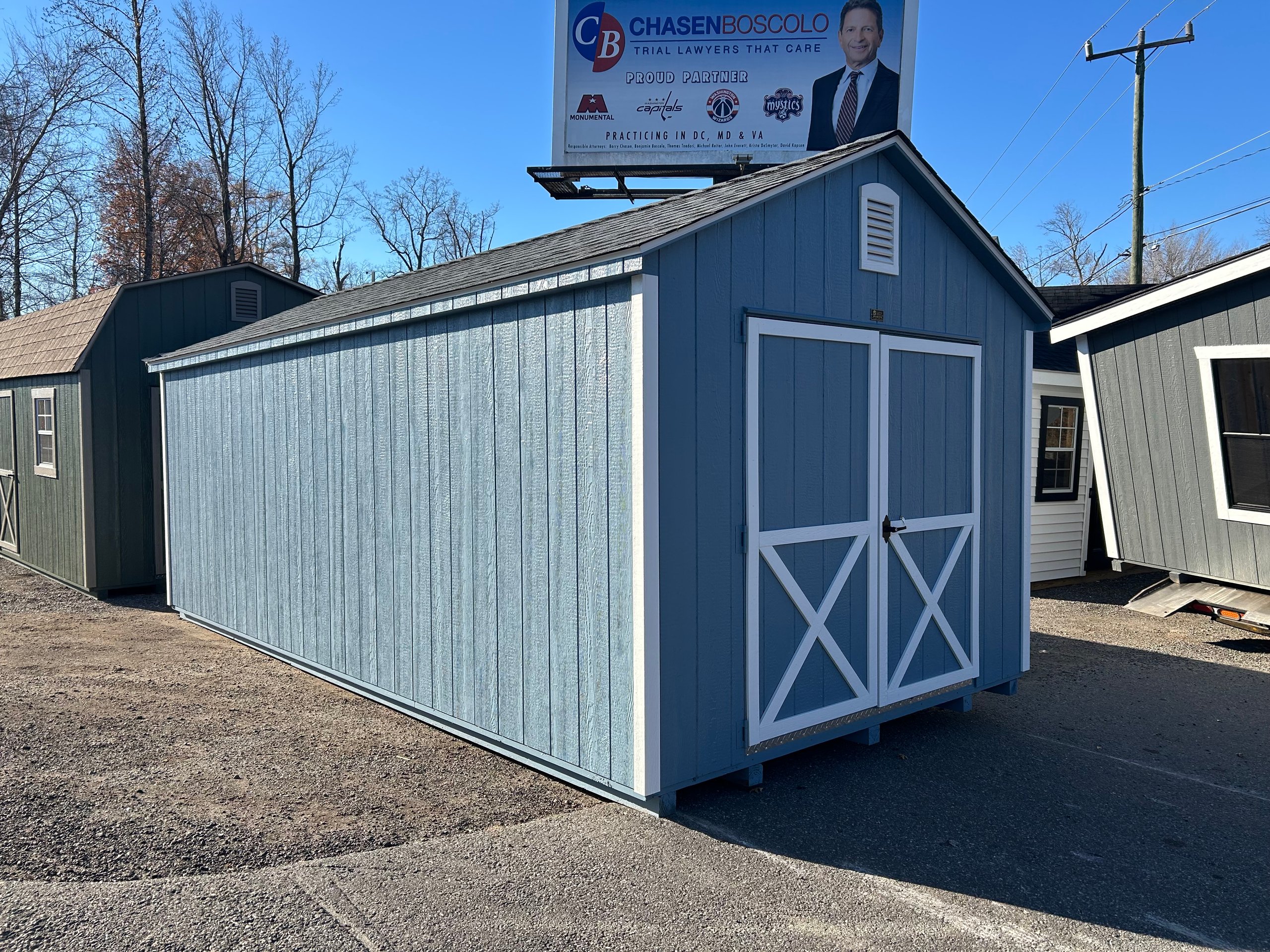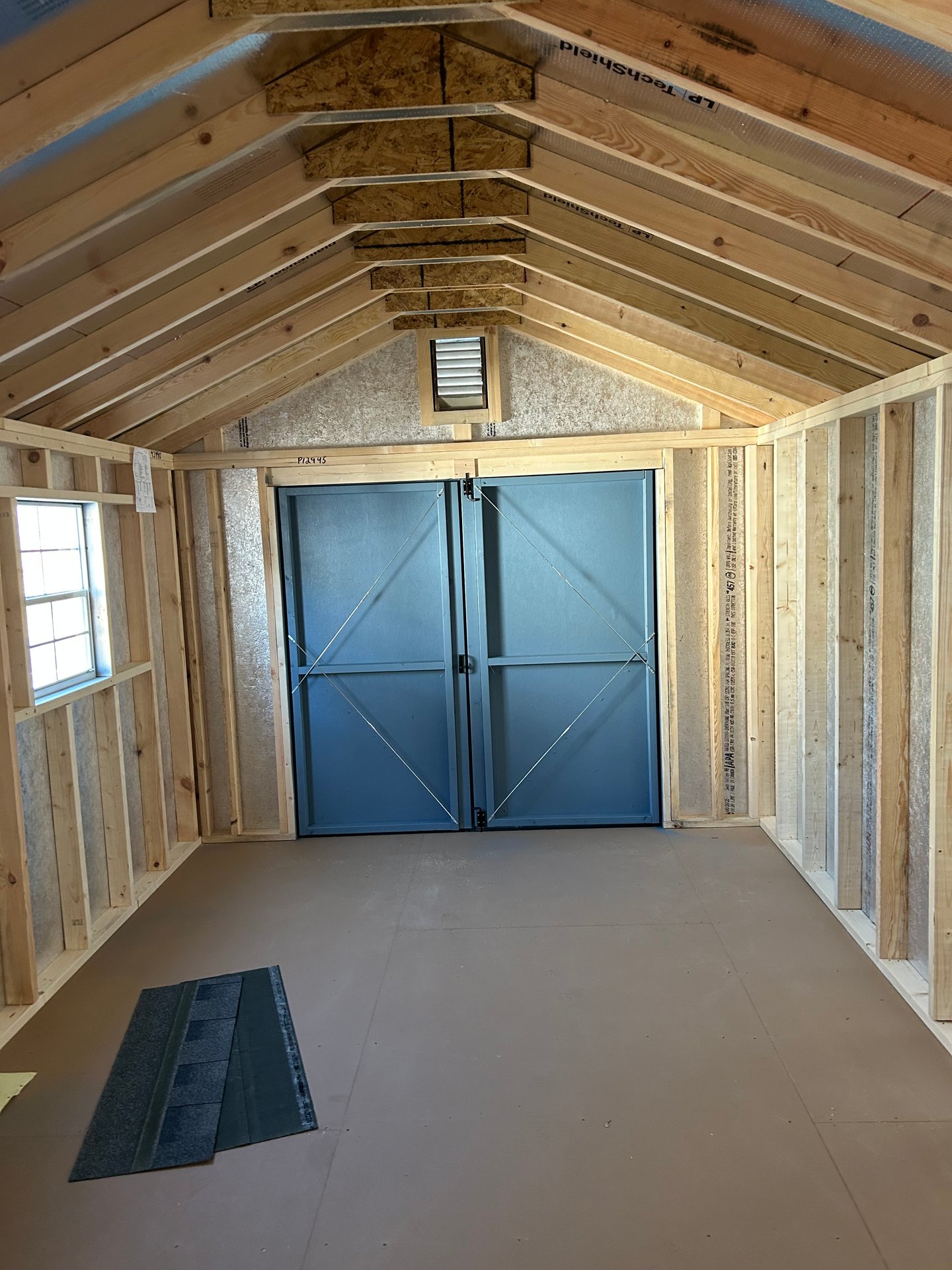 This 10×20 A-Frame shed delivers spacious, dependable storage with a bright Blue exterior, crisp White trim, and matching Blue architectural shingles. Constructed with LP Smart Panel siding, 2×4 studs and rafters 16″ on center, LP Tech Shield roof sheeting, and durable LP T&G Prostruct flooring on pressure-treated joists, it’s built for long-term strength. Three entry points—a 6ft double door and a 3ft single door—make access easy for tools, equipment, or hobby gear. Inside, a full 10ft loft and 10ft workbench provide versatile organization and workspace. Finished with dual garden vents for improved airflow, this shed is ready for anything.