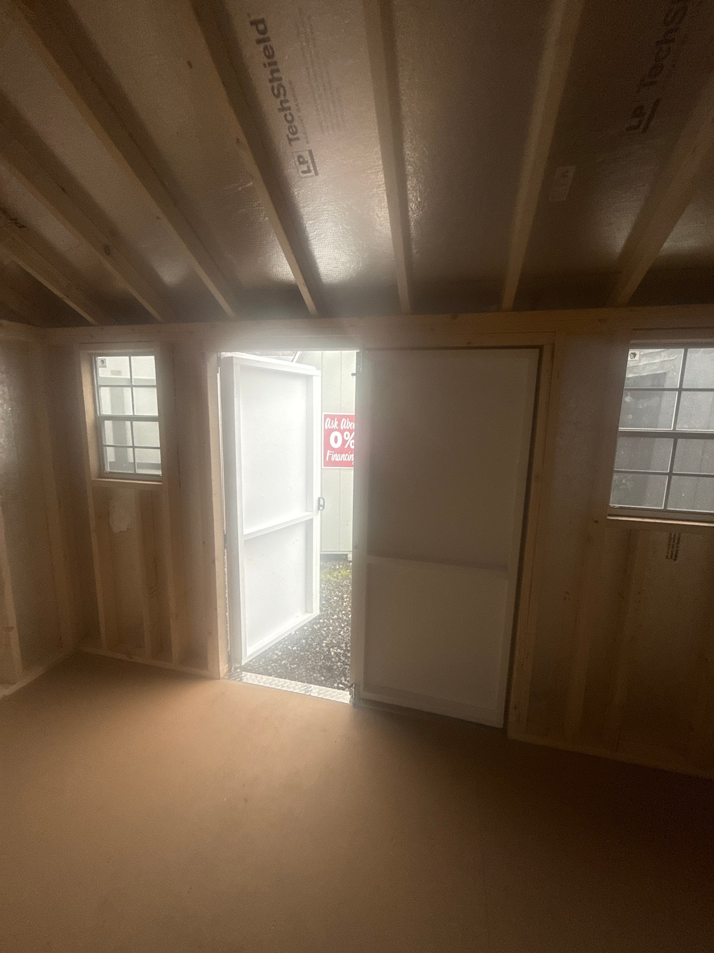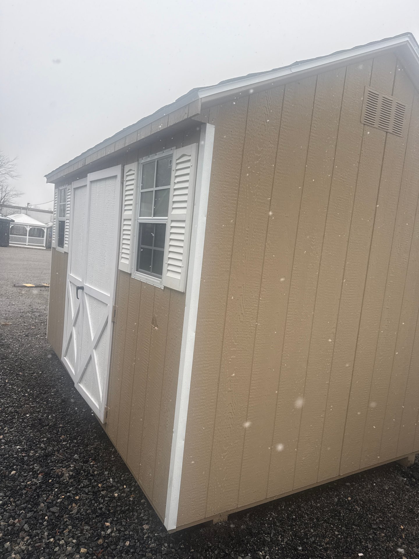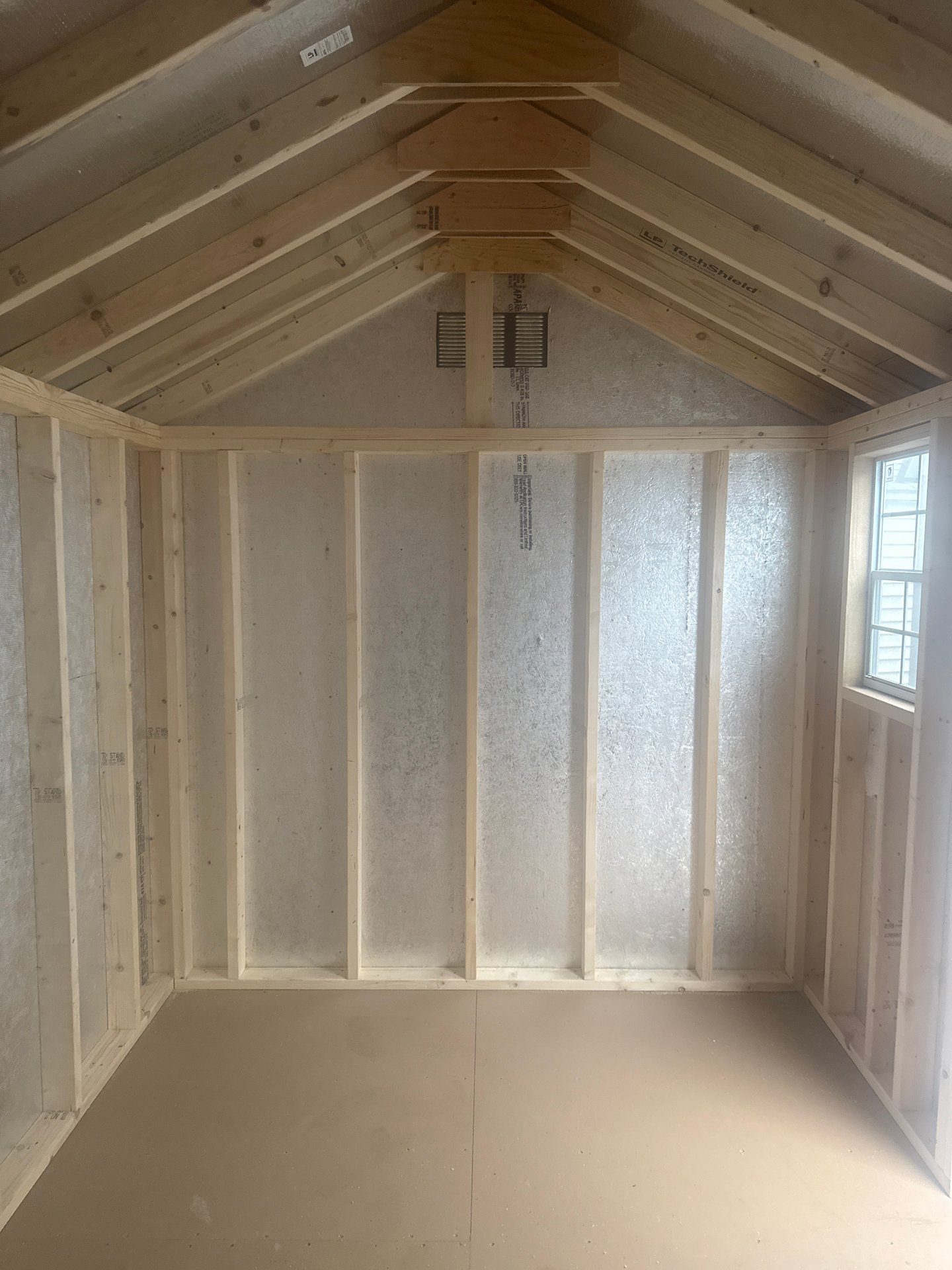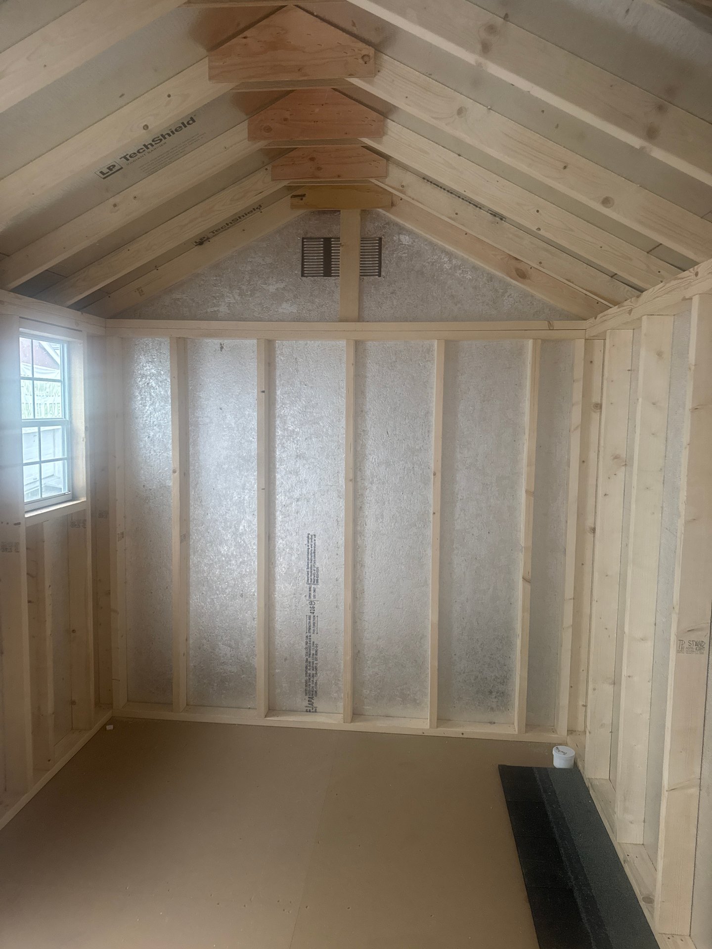 The 8×12 A-Frame offers compact versatility with classic style and dependable construction. Finished in rich Dark Gray LP SmartPanel siding with Silverbacker, accented by White trim and a Virginia Slate architectural shingle roof, it’s both elegant and durable. Built with 2×4 framing and rafters 16″ on center, LP Tech Shield roof sheeting, and LP ProStruct flooring supported by pressure-treated joists 12″ on center, this structure ensures lasting performance. With two windows and two doors for light and accessibility, the A-Frame is a refined, space-efficient choice for secure storage or a stylish backyard feature.