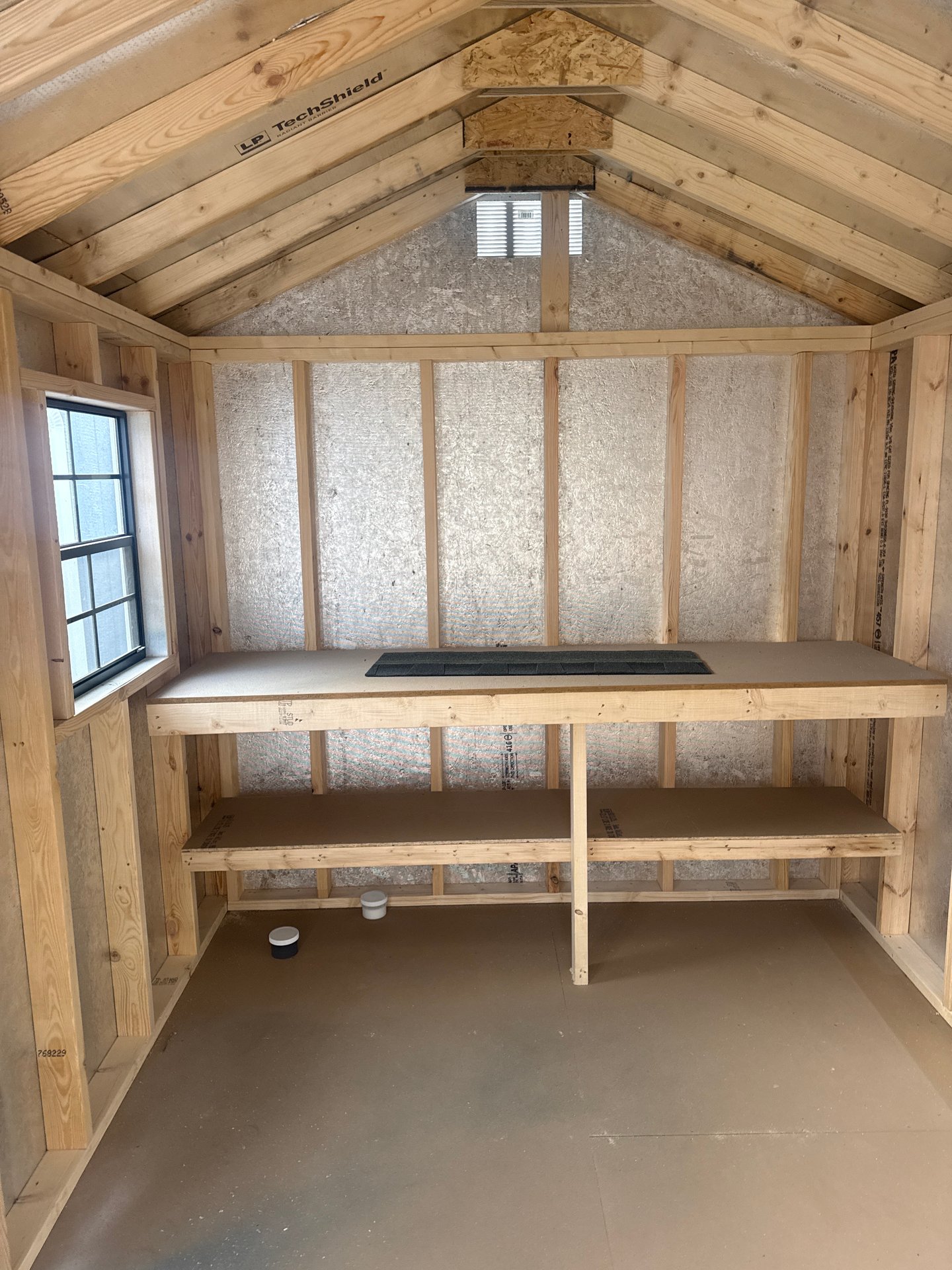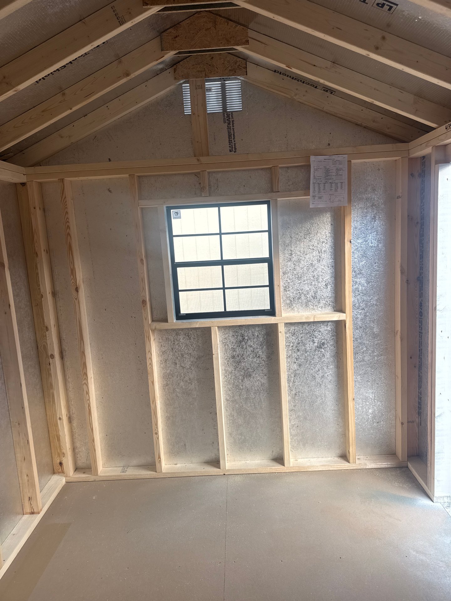 The 8×12 A-Frame offers compact versatility with classic style and dependable construction. Finished in rich White LP SmartPanel siding with Silverbacker, accented by White trim and a Black architectural shingle roof, it’s both elegant and durable. Built with 2×4 framing and rafters 16″ on center, LP Tech Shield roof sheeting, and LP ProStruct flooring supported by pressure-treated joists 12″ on center, this structure ensures lasting performance. With two windows and two doors for light and accessibility, the A-Frame is a refined, space-efficient choice for secure storage or a stylish backyard feature.