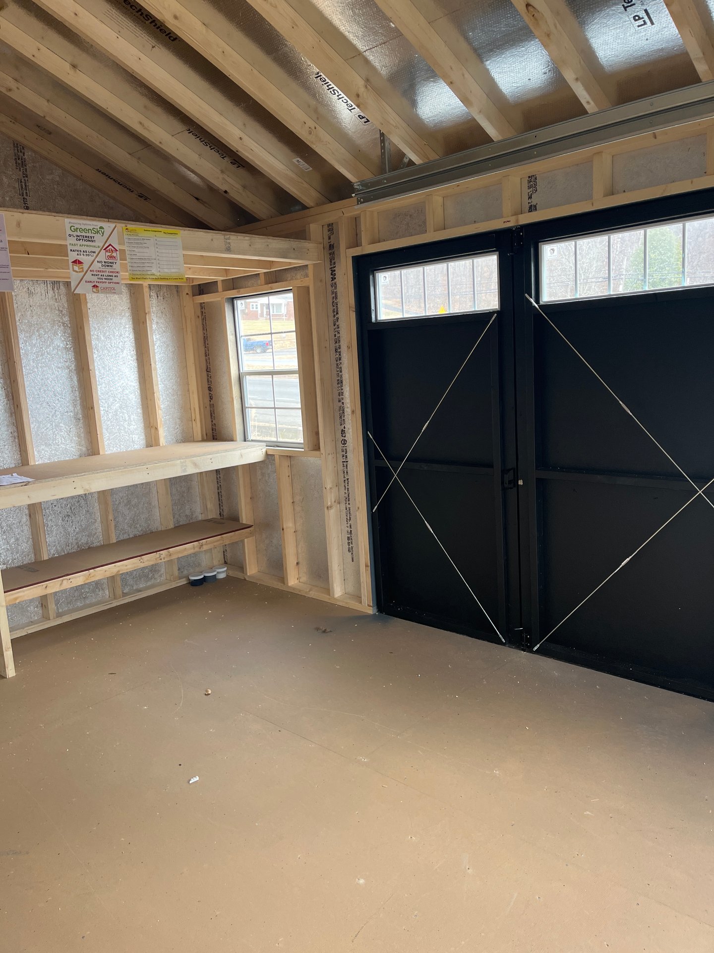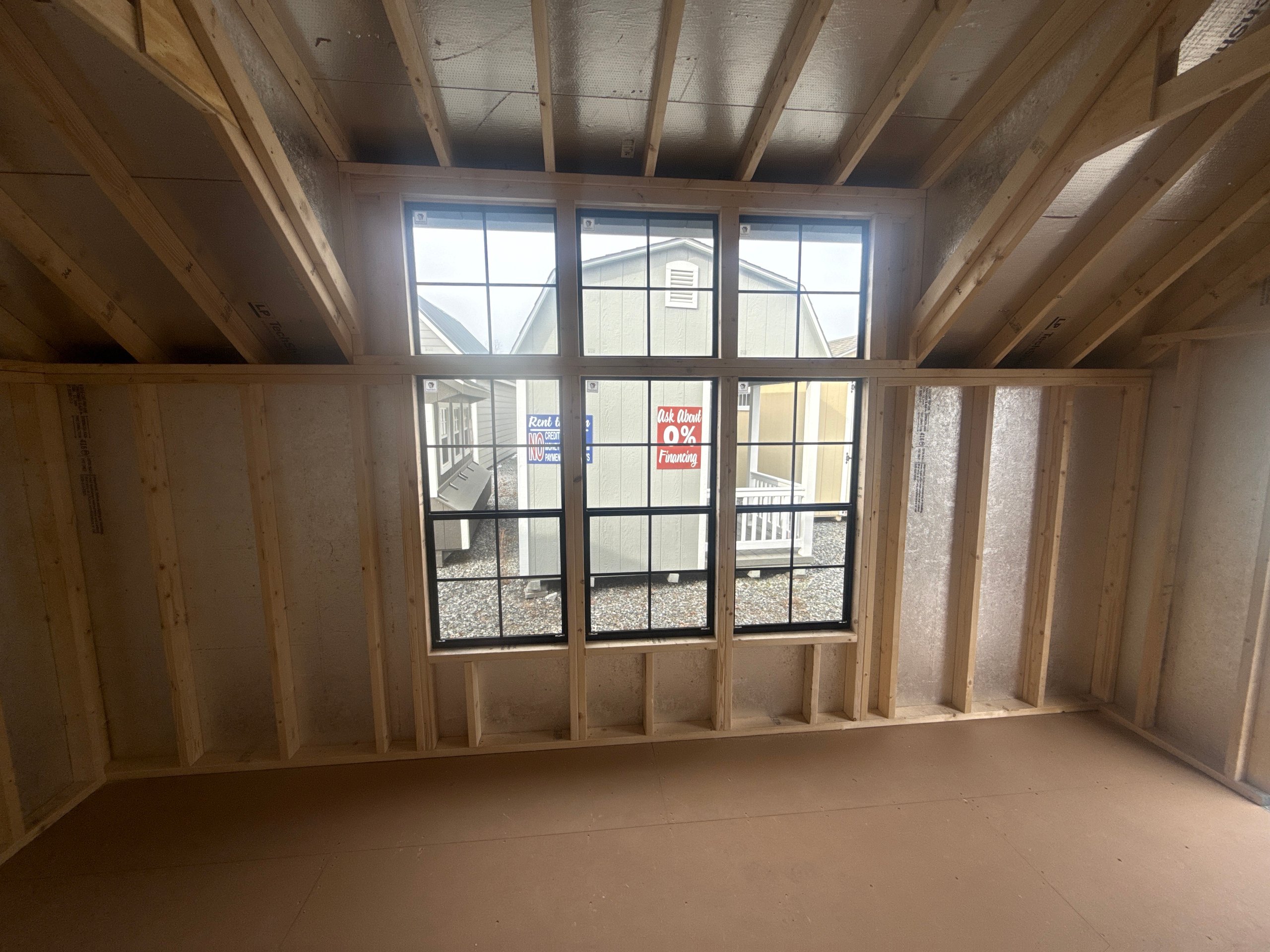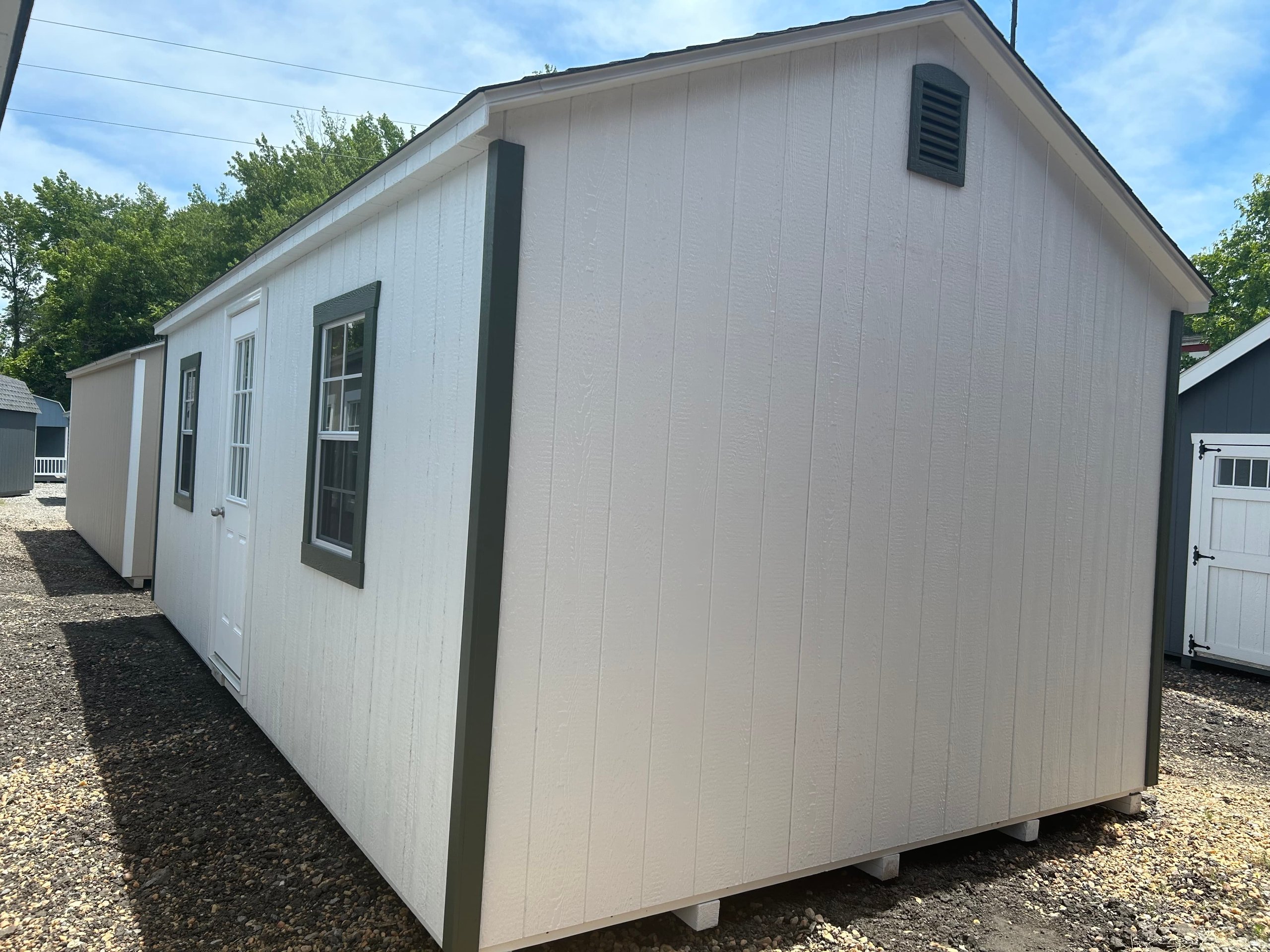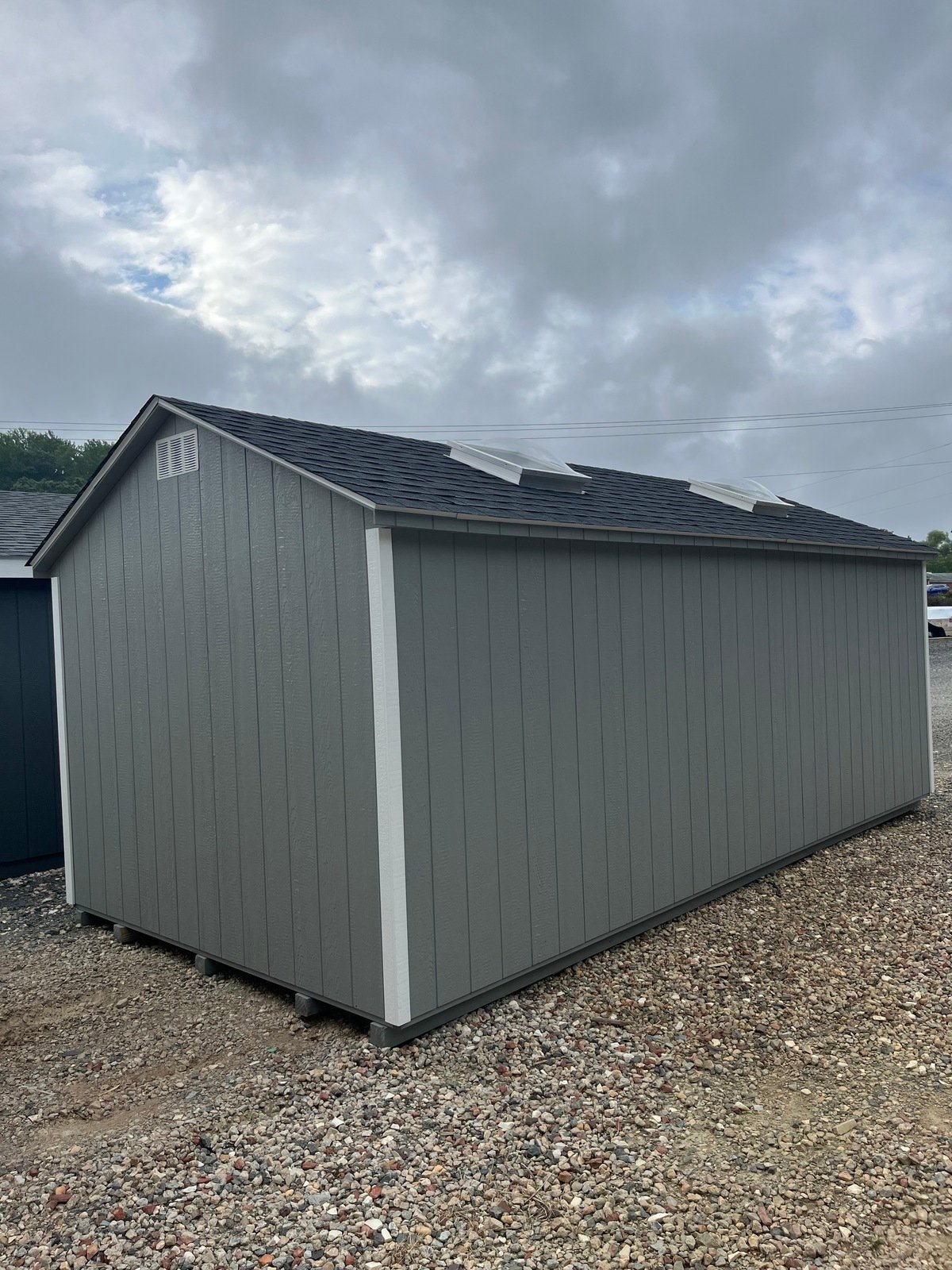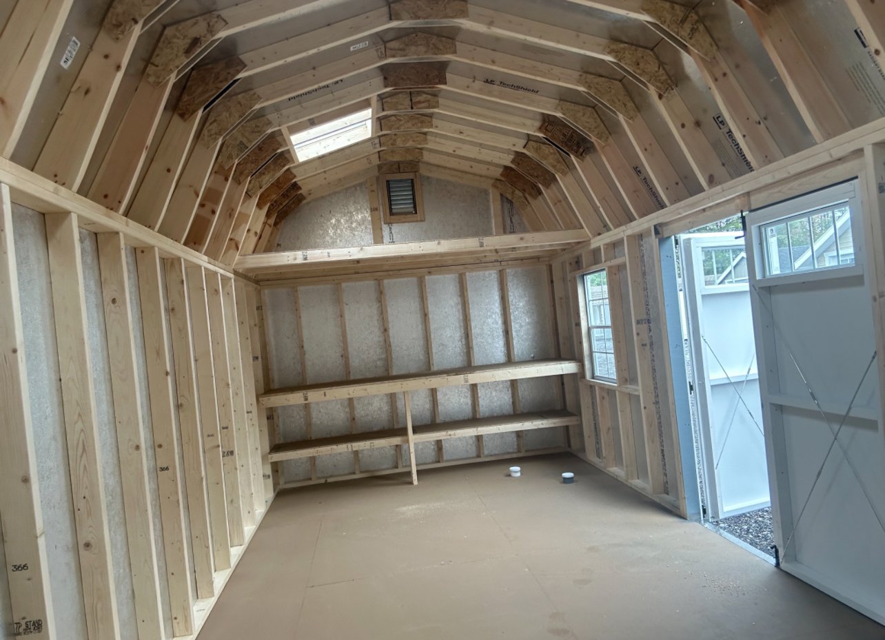 ???? Style Name: Hi Wall  A-Frame ???? Size: 12X16 ????️ Siding: LP Smart Panel ???? Main Color: Dark Gray ???? Trim Color: White ???? Roof Color: Black ???? Number of Windows: 2 ???? Flooring: 3/4″ LP Prostruct Flooring Included Upgrades: Garden/Transom DD Add 9X7 Overhead Door With Glass uPGRADE (2) 24×36 Windows Add Trim (2) Windows Add (2) Deluxe Garden Vents Add 4′ Deep Loft Add W@orkbench W/ Shelf Below