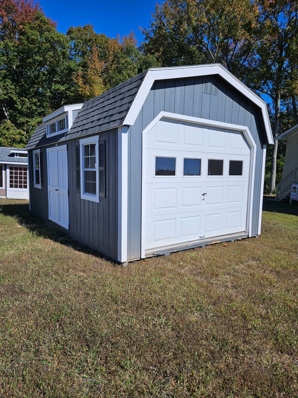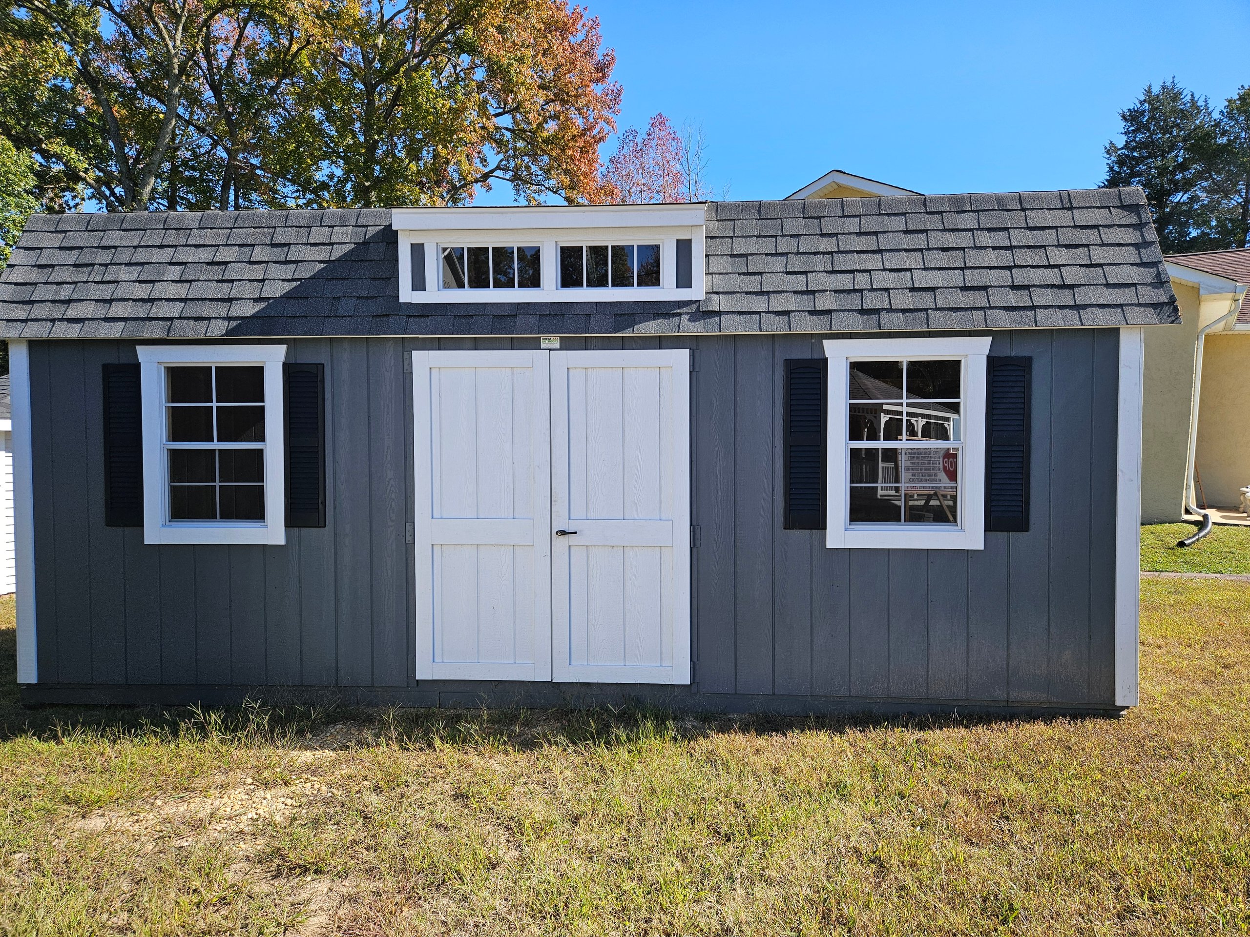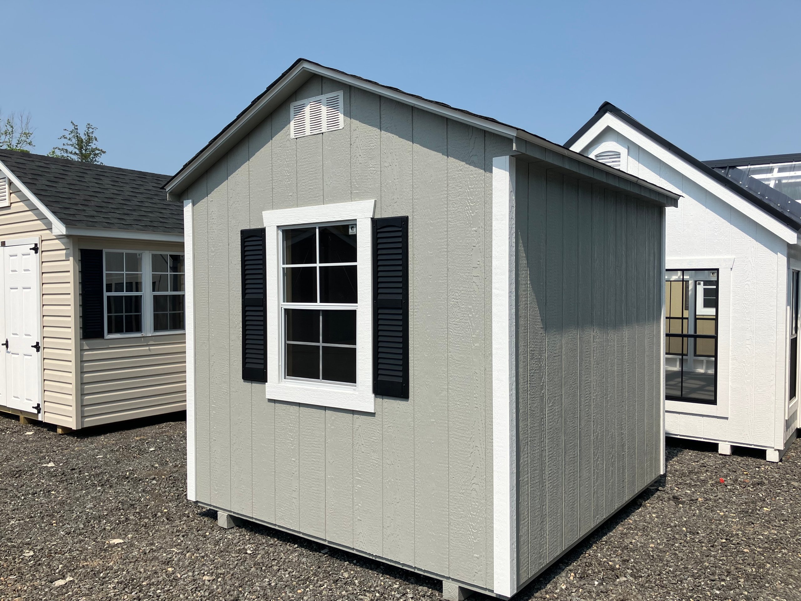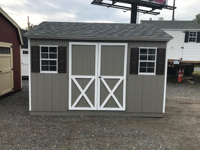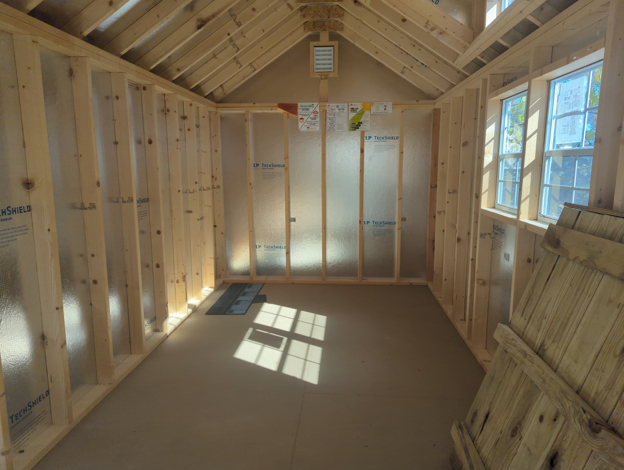 ???? Style Name: Hi Wall  A-Frame ???? Size: 12X16 ????️ Siding: LP Smart Panel ???? Main Color: Dark Gray ???? Trim Color: White ???? Roof Color: Black ???? Number of Windows: 2 ???? Flooring: 3/4″ LP Prostruct Flooring Included Upgrades: Garden/Transom DD Add 9X7 Overhead Door With Glass uPGRADE (2) 24×36 Windows Add Trim (2) Windows Add (2) Deluxe Garden Vents Add 4′ Deep Loft Add W@orkbench W/ Shelf Below