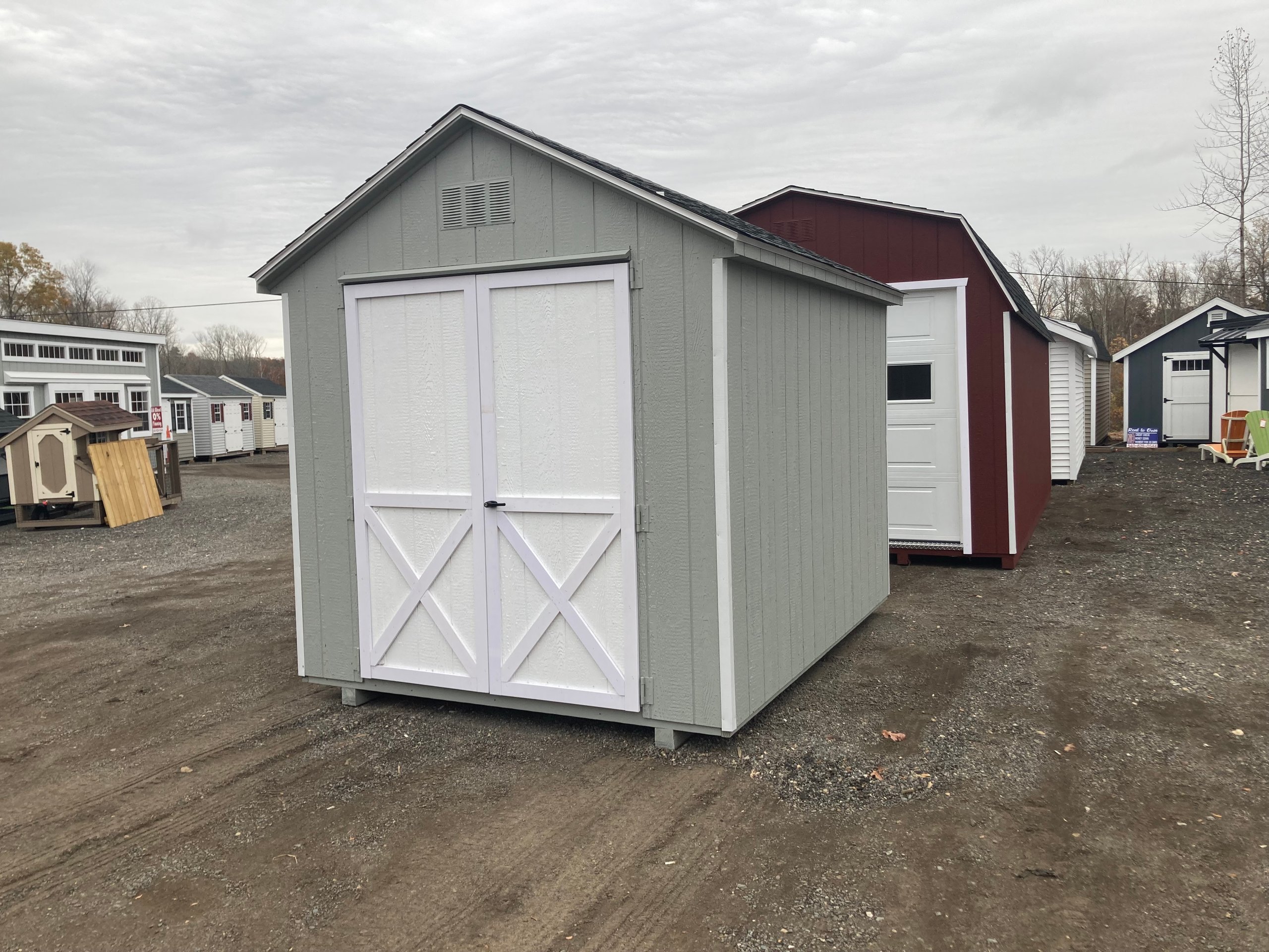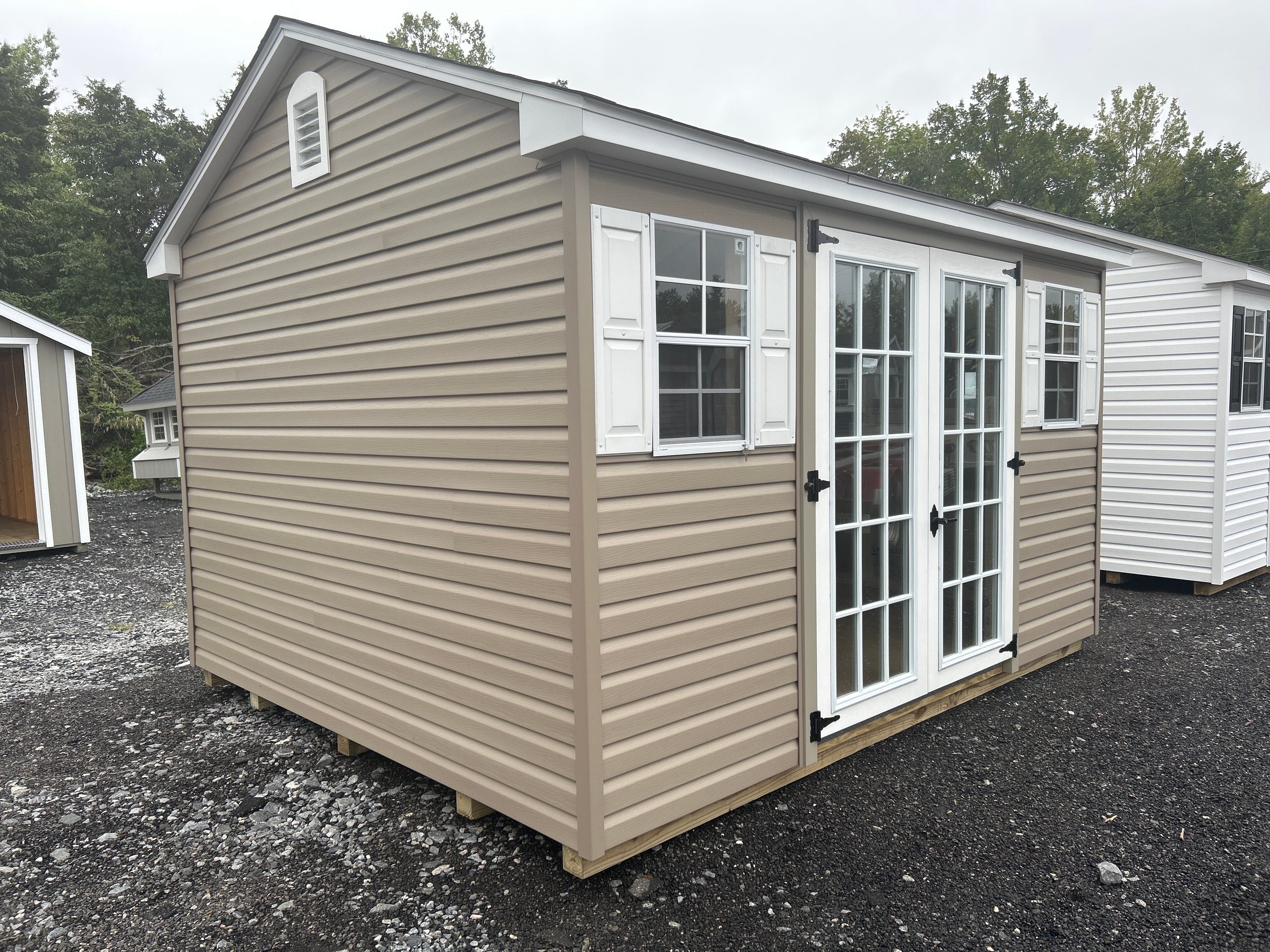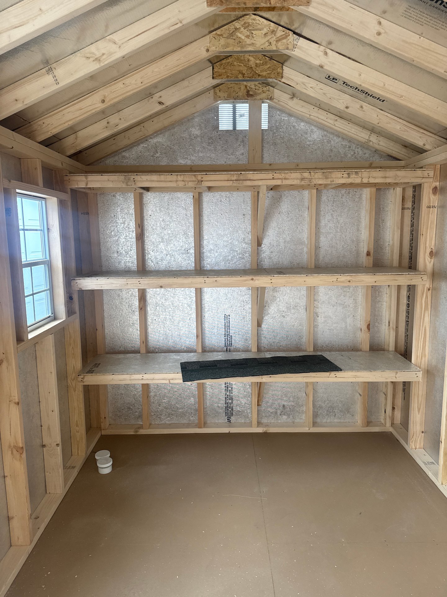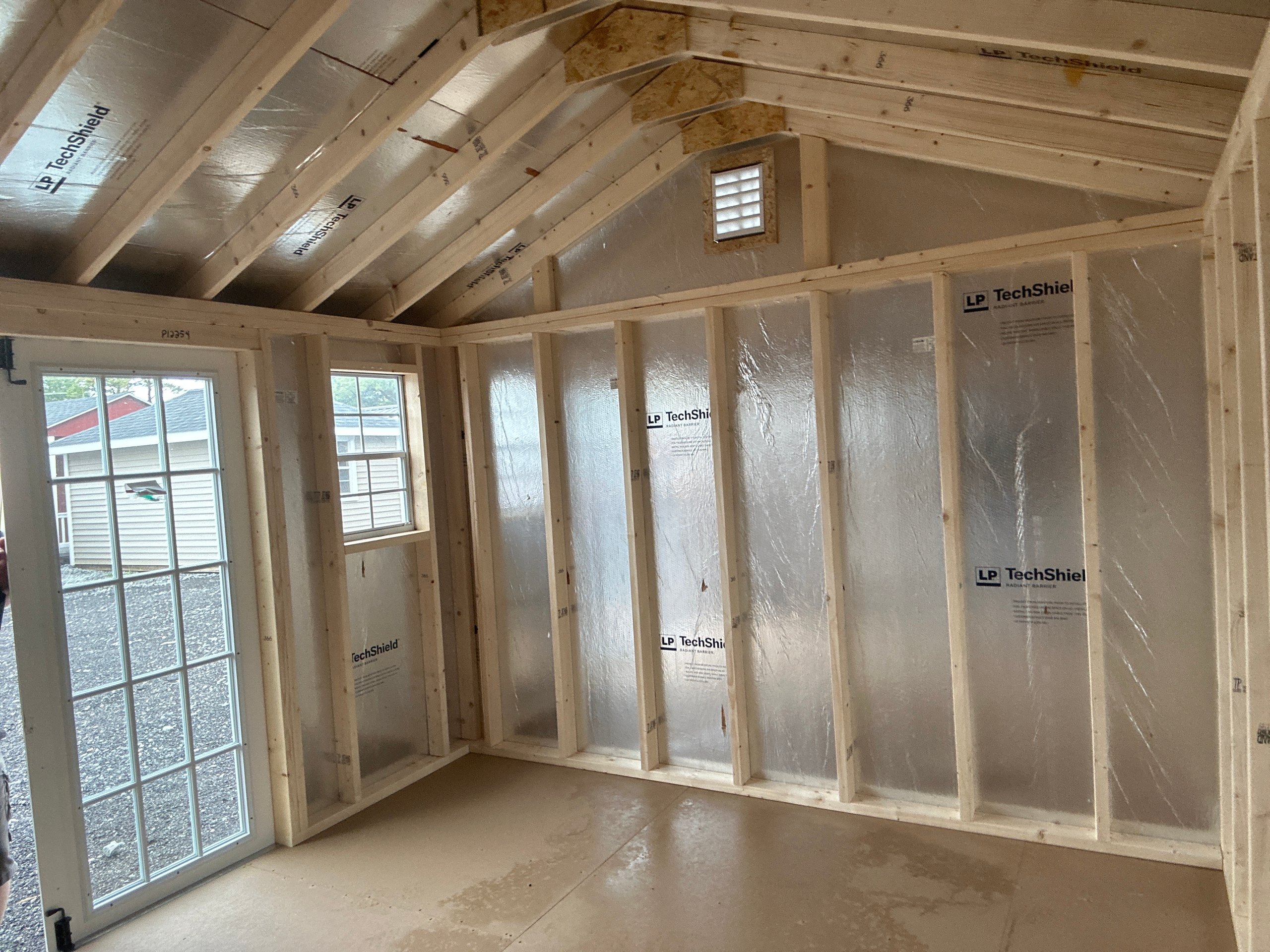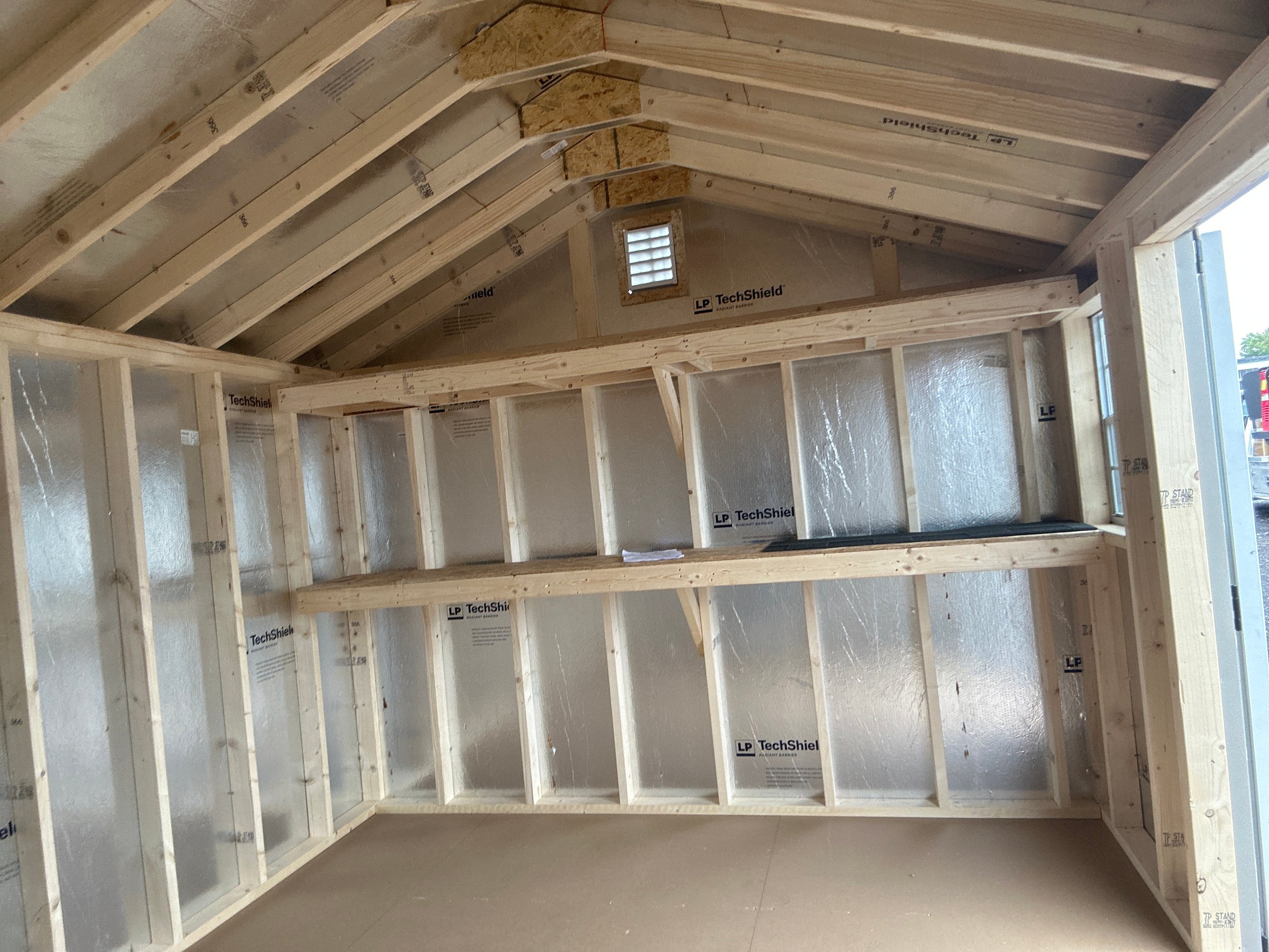 ???? Style Name: Hi Wall  A-Frame ???? Size: 12X16 ????️ Siding: LP Smart Panel ???? Main Color: Dark Gray ???? Trim Color: White ???? Roof Color: Black ???? Number of Windows: 2 ???? Flooring: 3/4″ LP Prostruct Flooring Included Upgrades: Garden/Transom DD Add 9X7 Overhead Door With Glass uPGRADE (2) 24×36 Windows Add Trim (2) Windows Add (2) Deluxe Garden Vents Add 4′ Deep Loft Add W@orkbench W/ Shelf Below