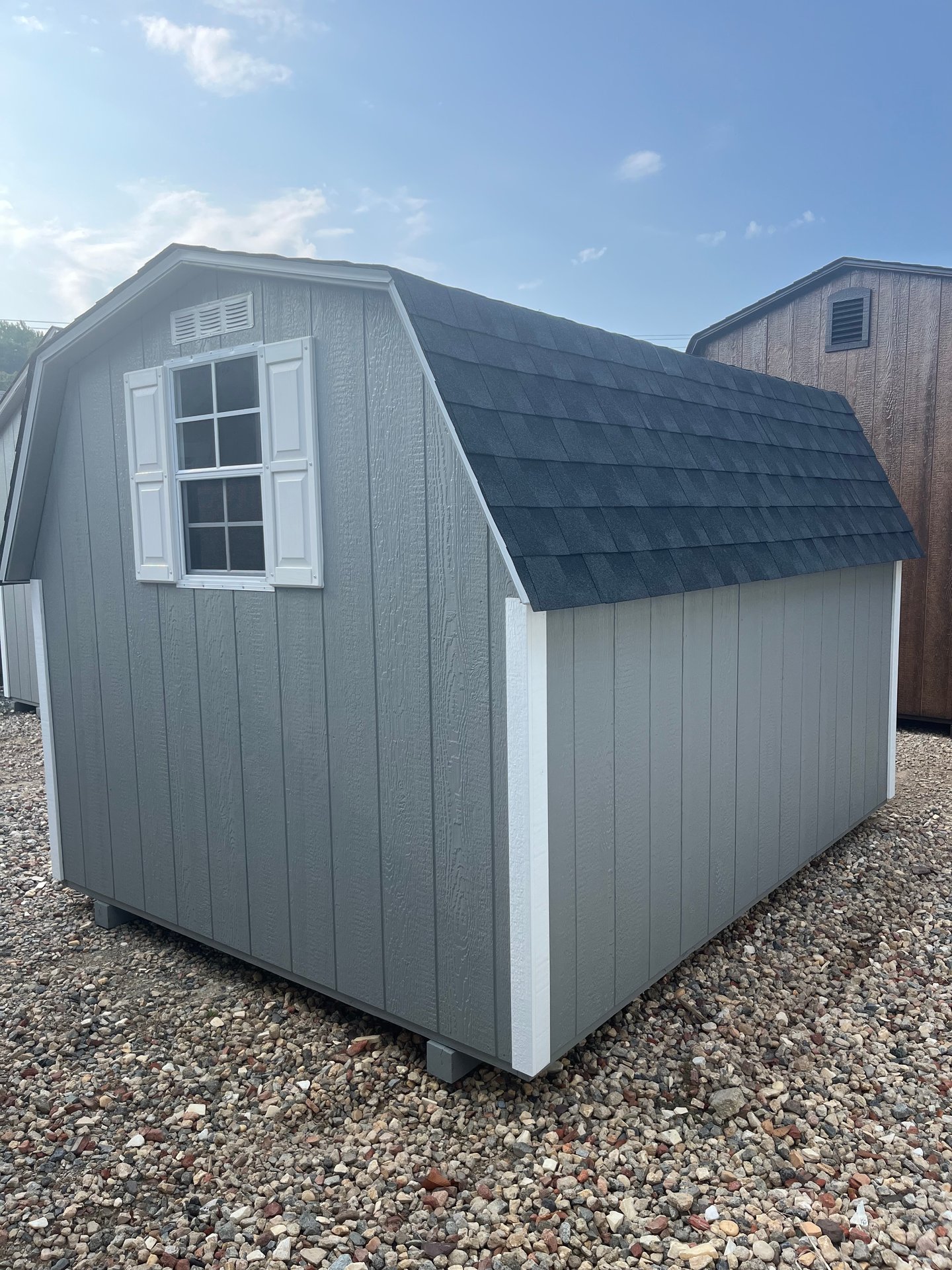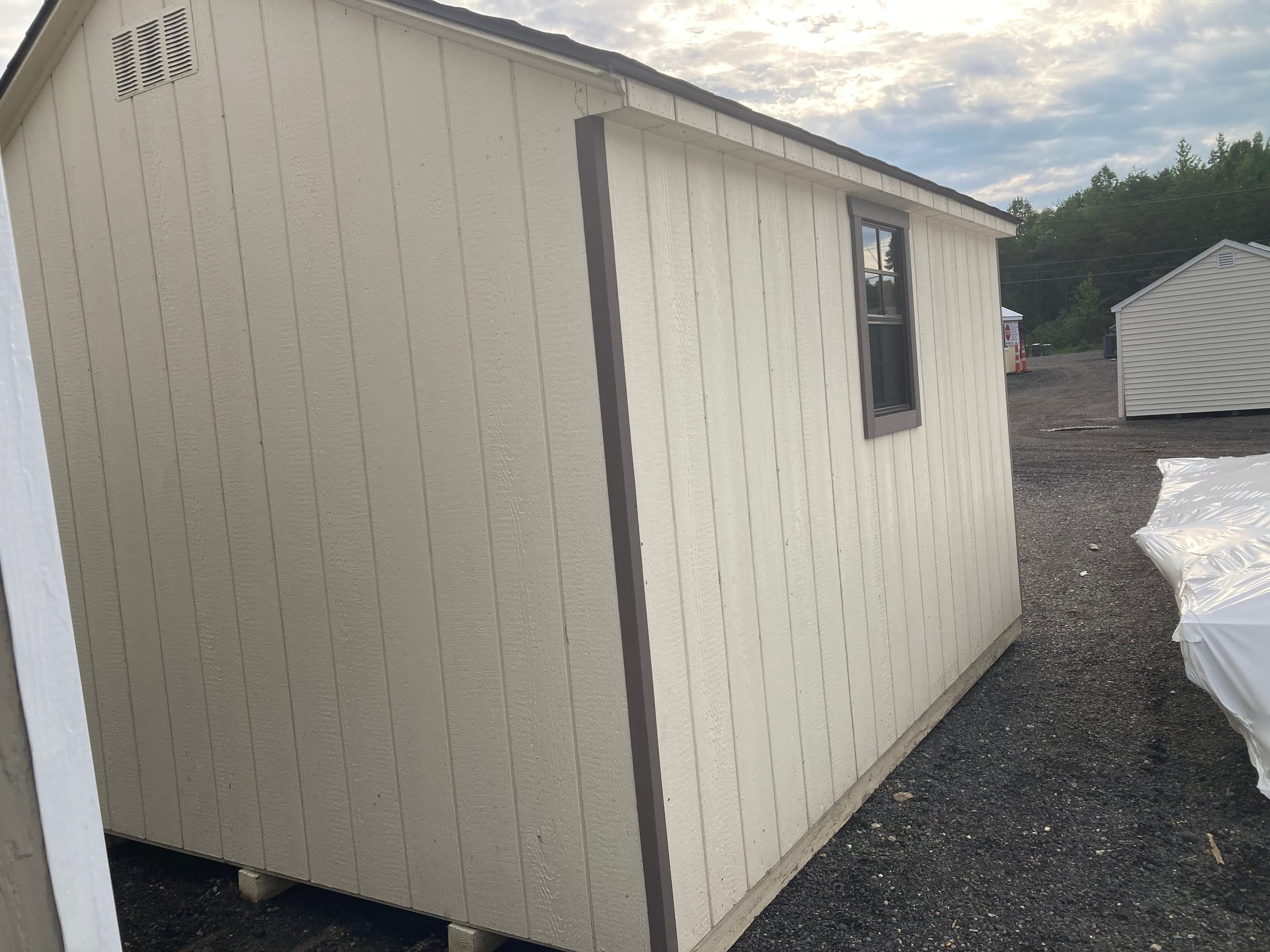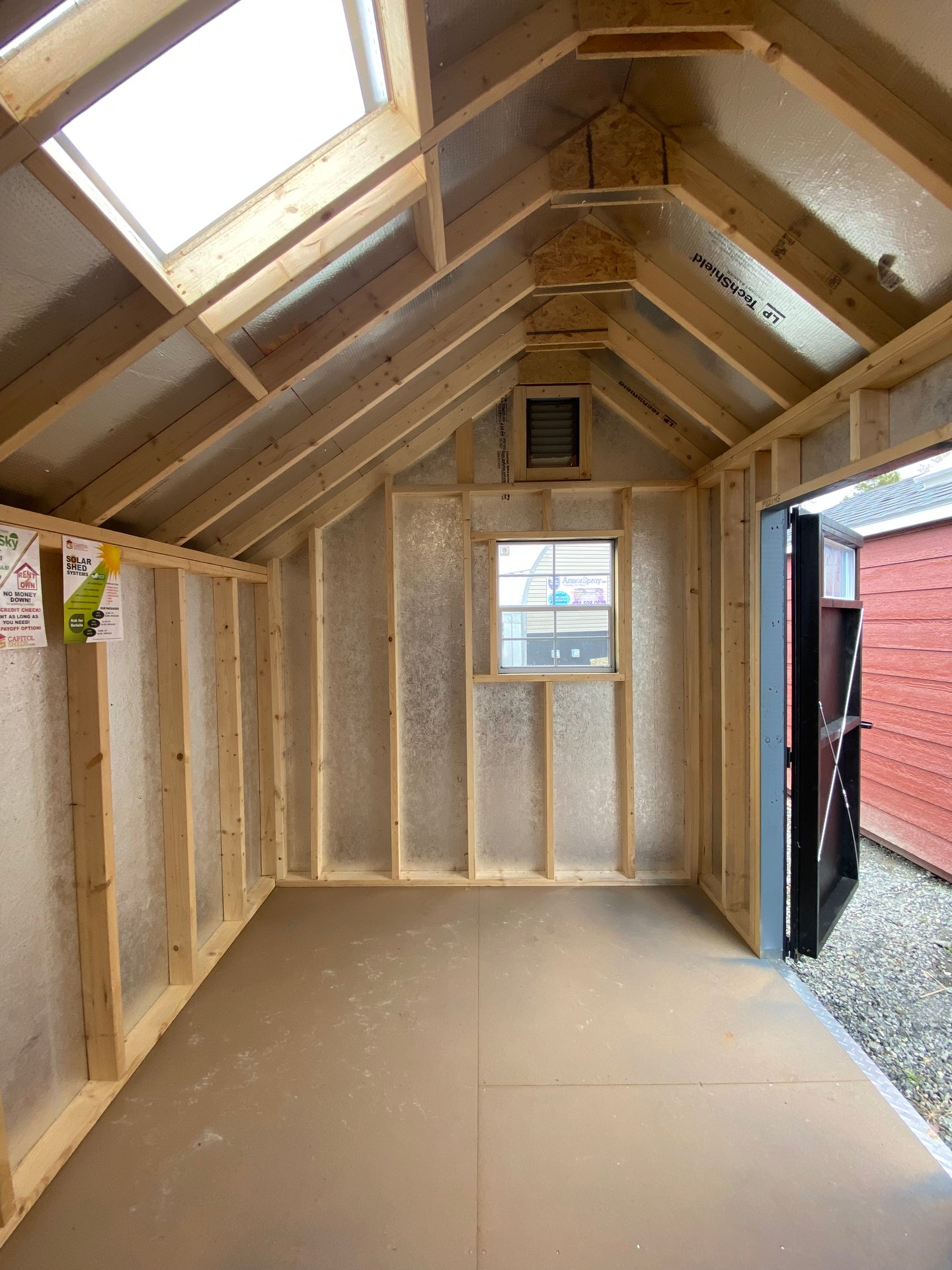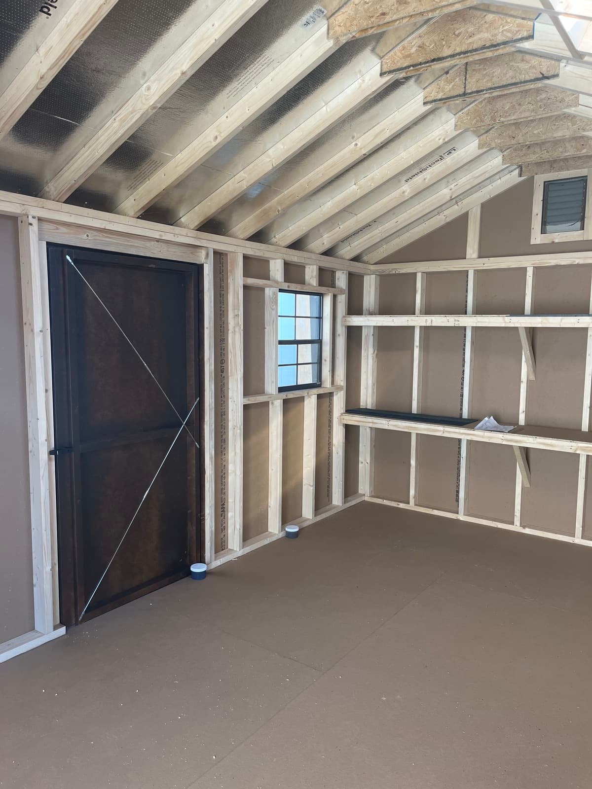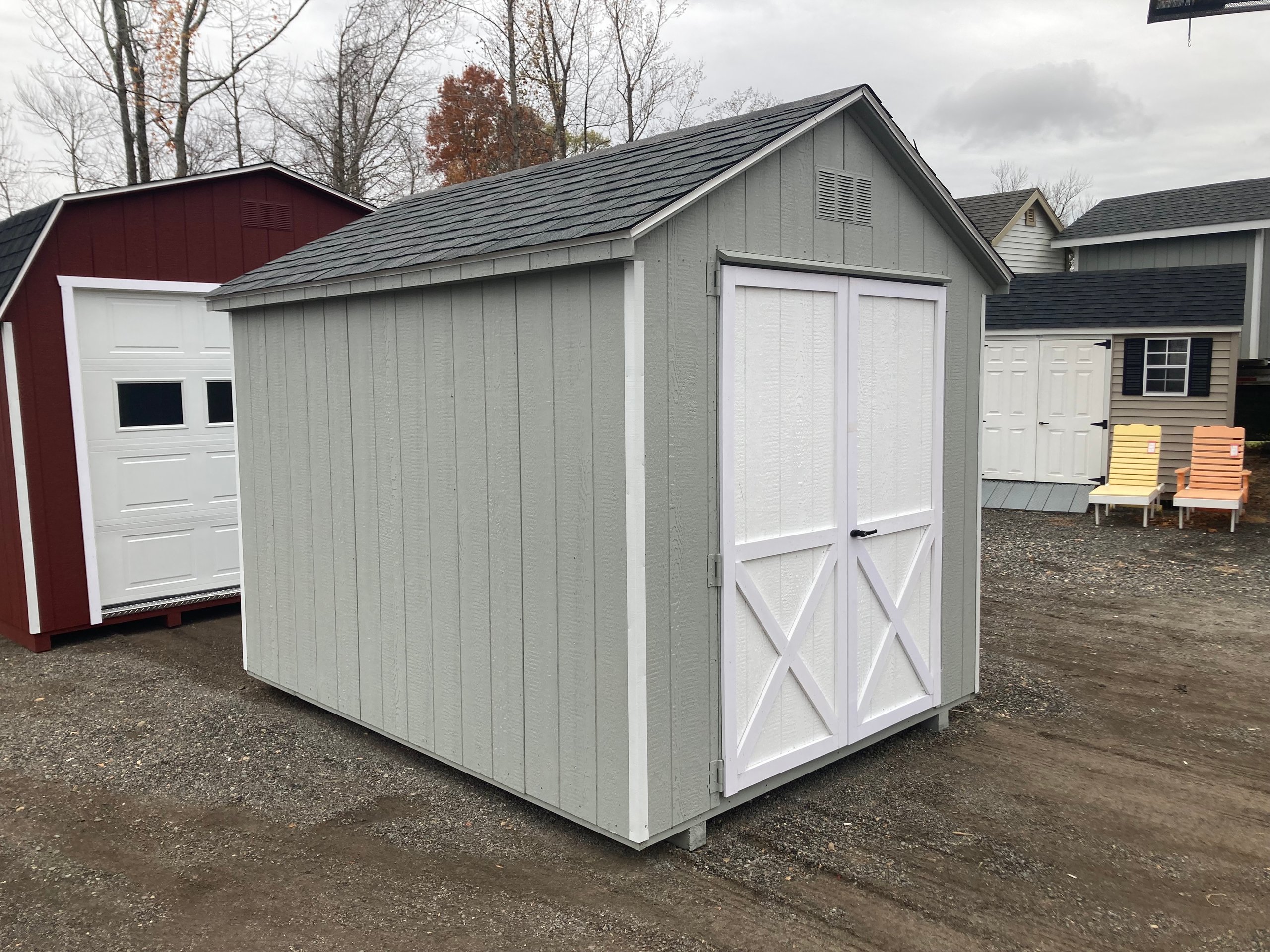 ???? Style Name: Hi Wall  A-Frame ???? Size: 12X16 ????️ Siding: LP Smart Panel ???? Main Color: Dark Gray ???? Trim Color: White ???? Roof Color: Black ???? Number of Windows: 2 ???? Flooring: 3/4″ LP Prostruct Flooring Included Upgrades: Garden/Transom DD Add 9X7 Overhead Door With Glass uPGRADE (2) 24×36 Windows Add Trim (2) Windows Add (2) Deluxe Garden Vents Add 4′ Deep Loft Add W@orkbench W/ Shelf Below