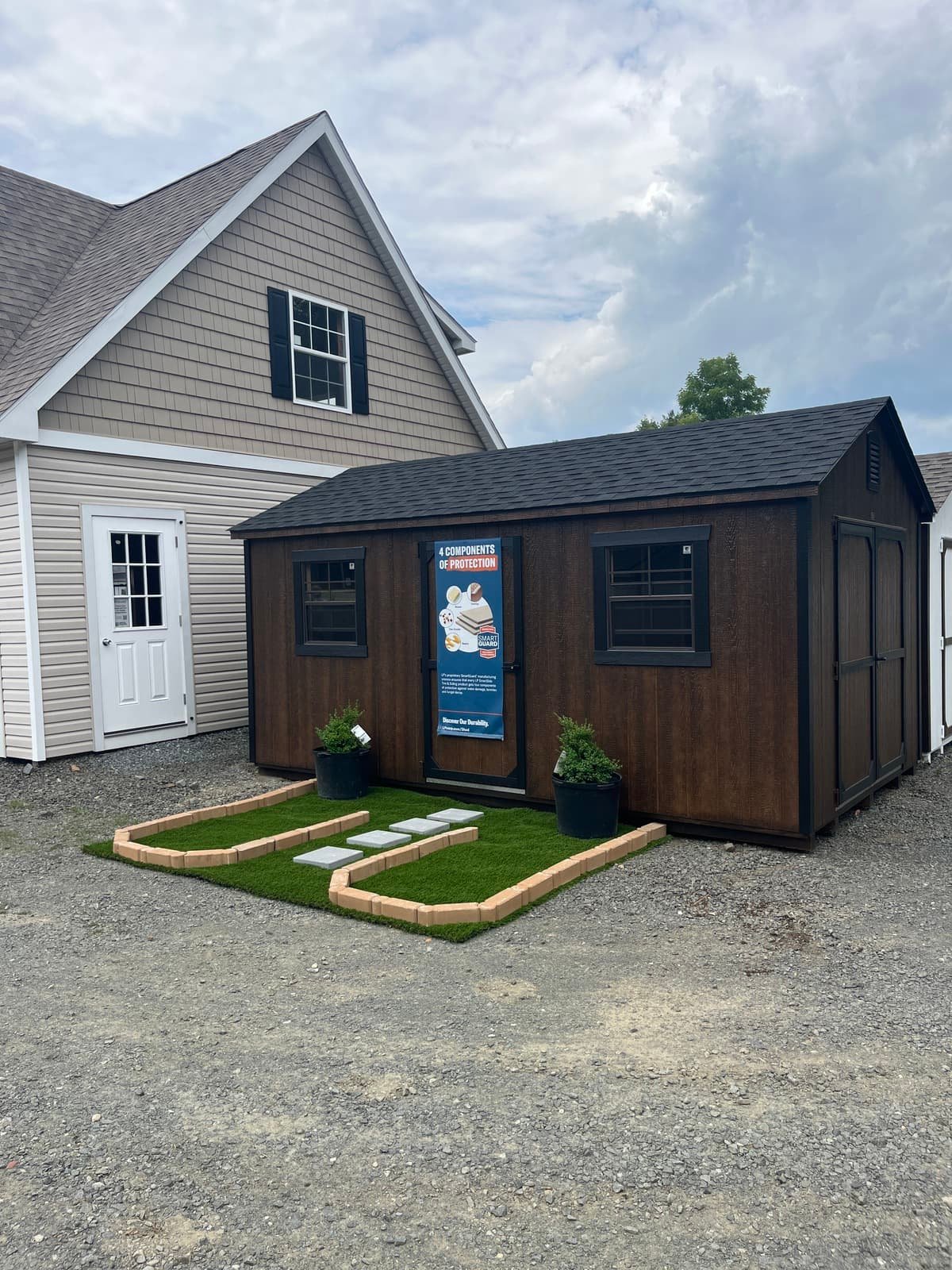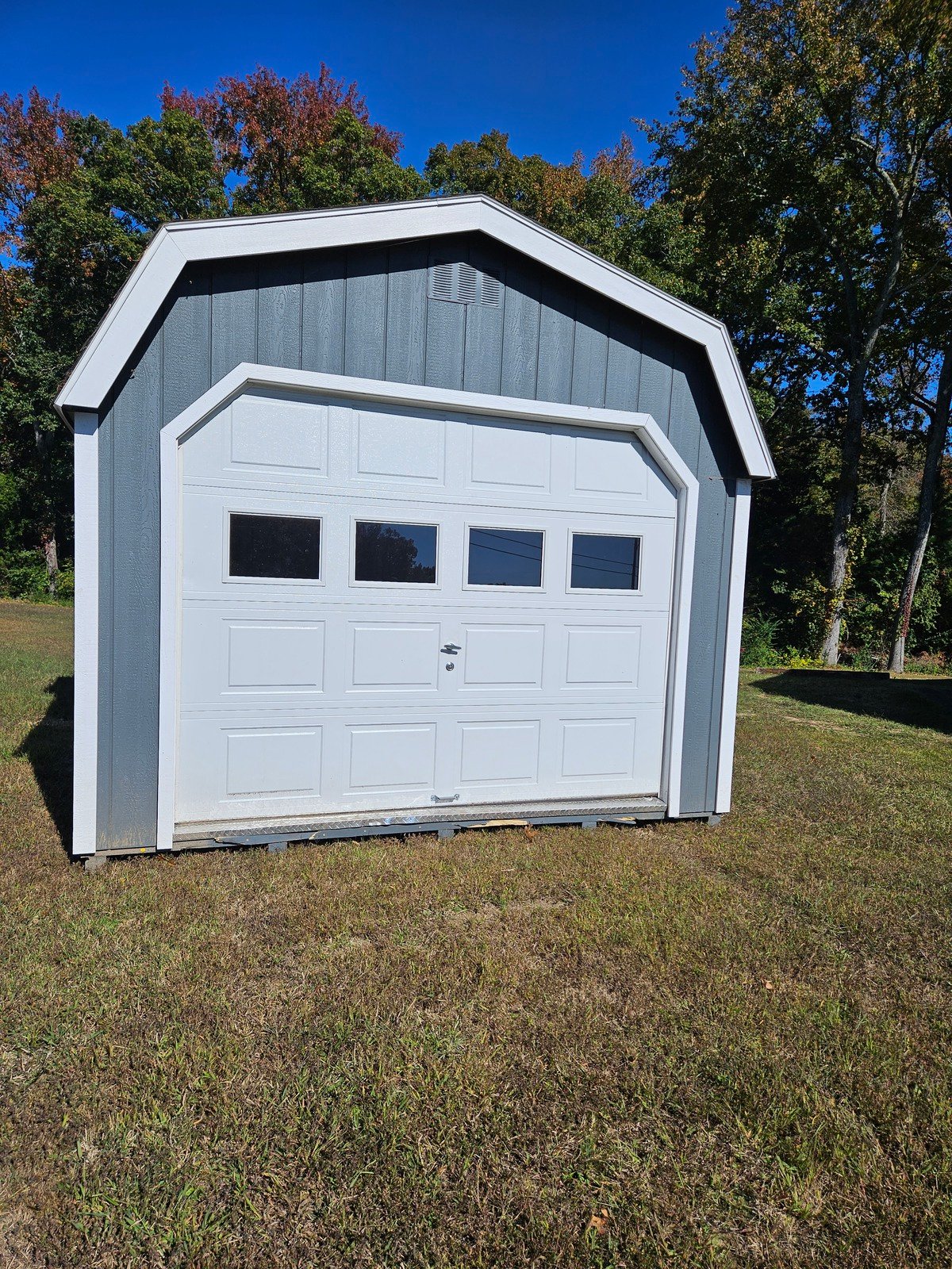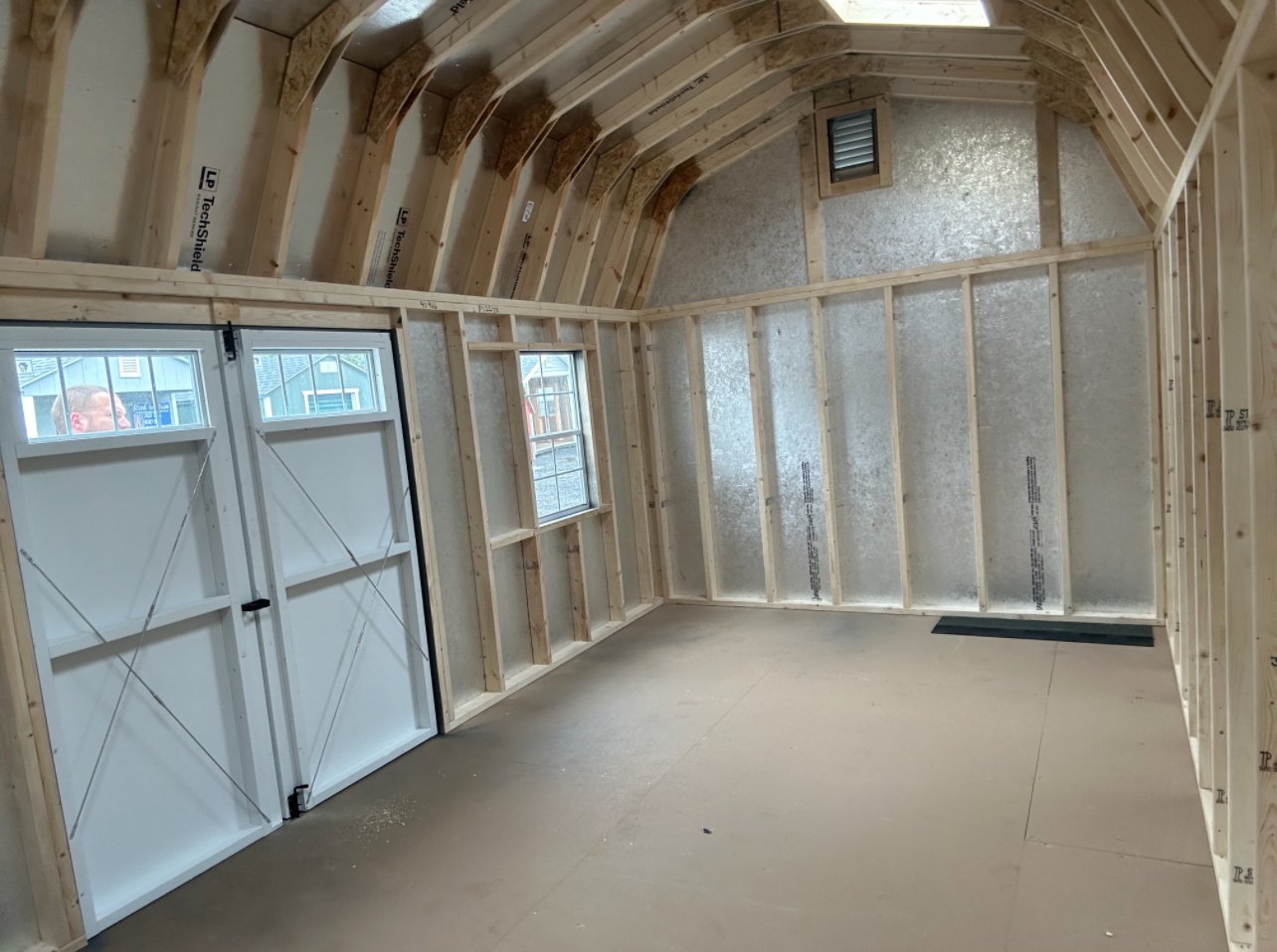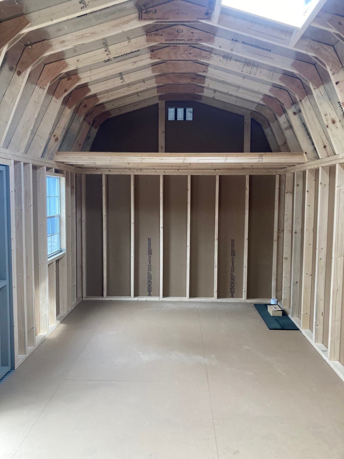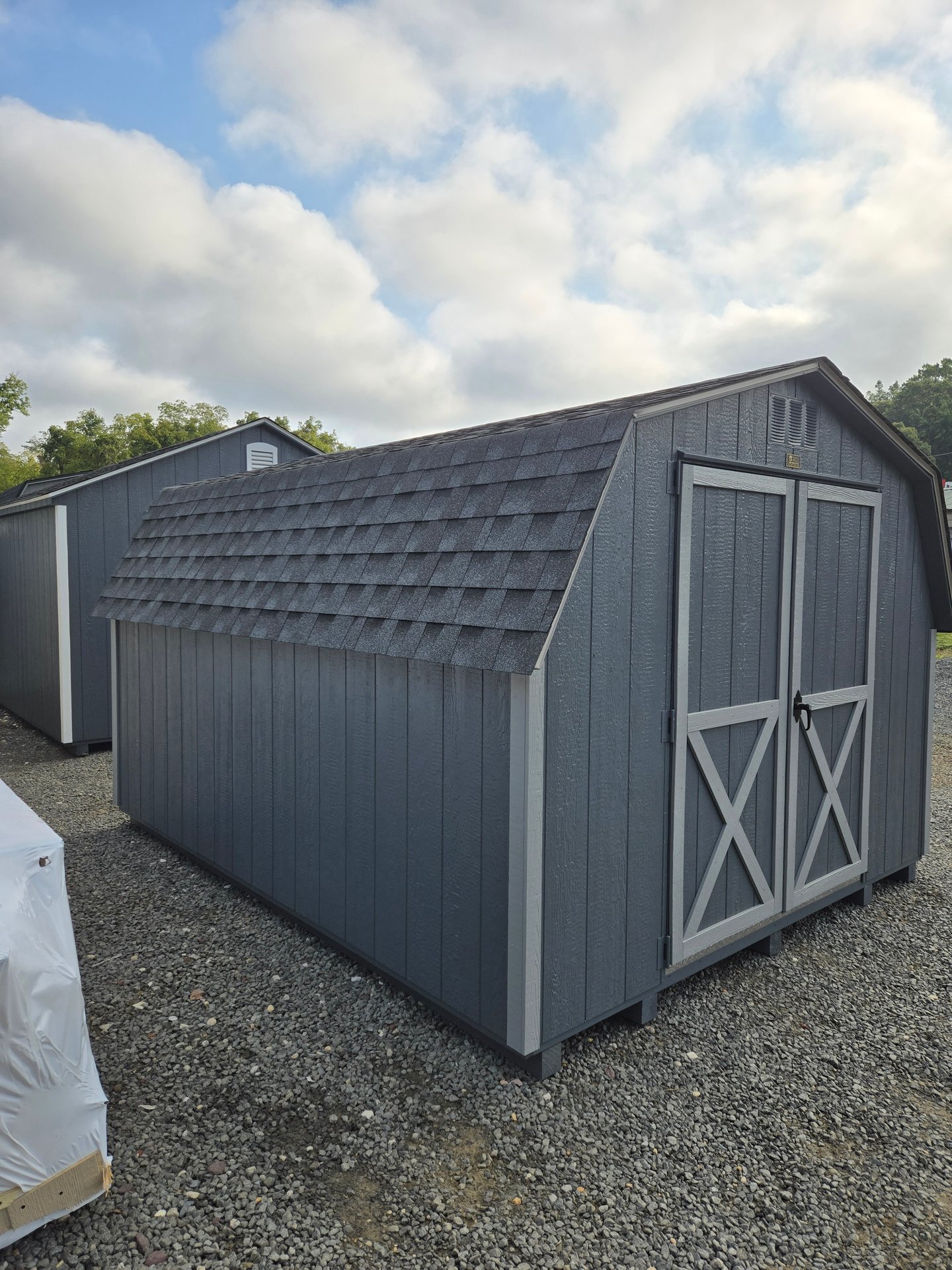 ???? Style Name: Hi Wall  A-Frame ???? Size: 12X16 ????️ Siding: LP Smart Panel ???? Main Color: Dark Gray ???? Trim Color: White ???? Roof Color: Black ???? Number of Windows: 2 ???? Flooring: 3/4″ LP Prostruct Flooring Included Upgrades: Garden/Transom DD Add 9X7 Overhead Door With Glass uPGRADE (2) 24×36 Windows Add Trim (2) Windows Add (2) Deluxe Garden Vents Add 4′ Deep Loft Add W@orkbench W/ Shelf Below