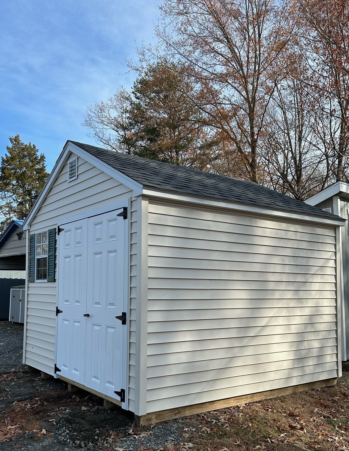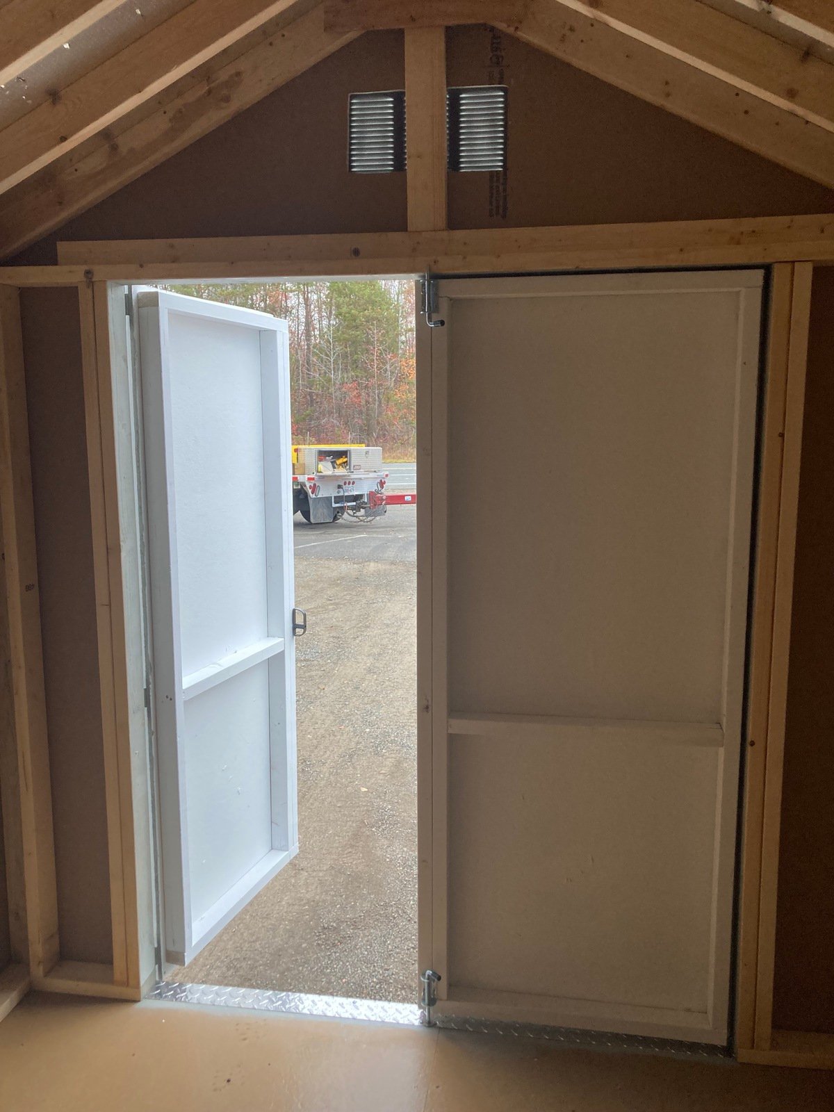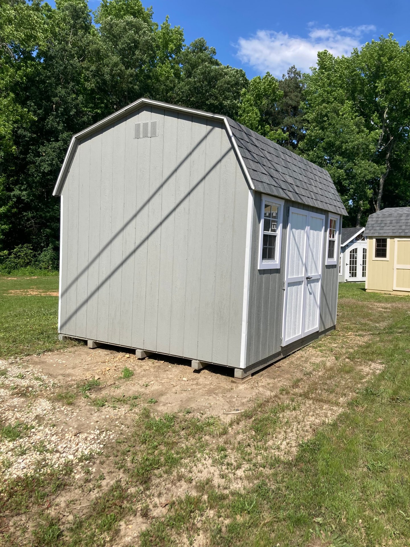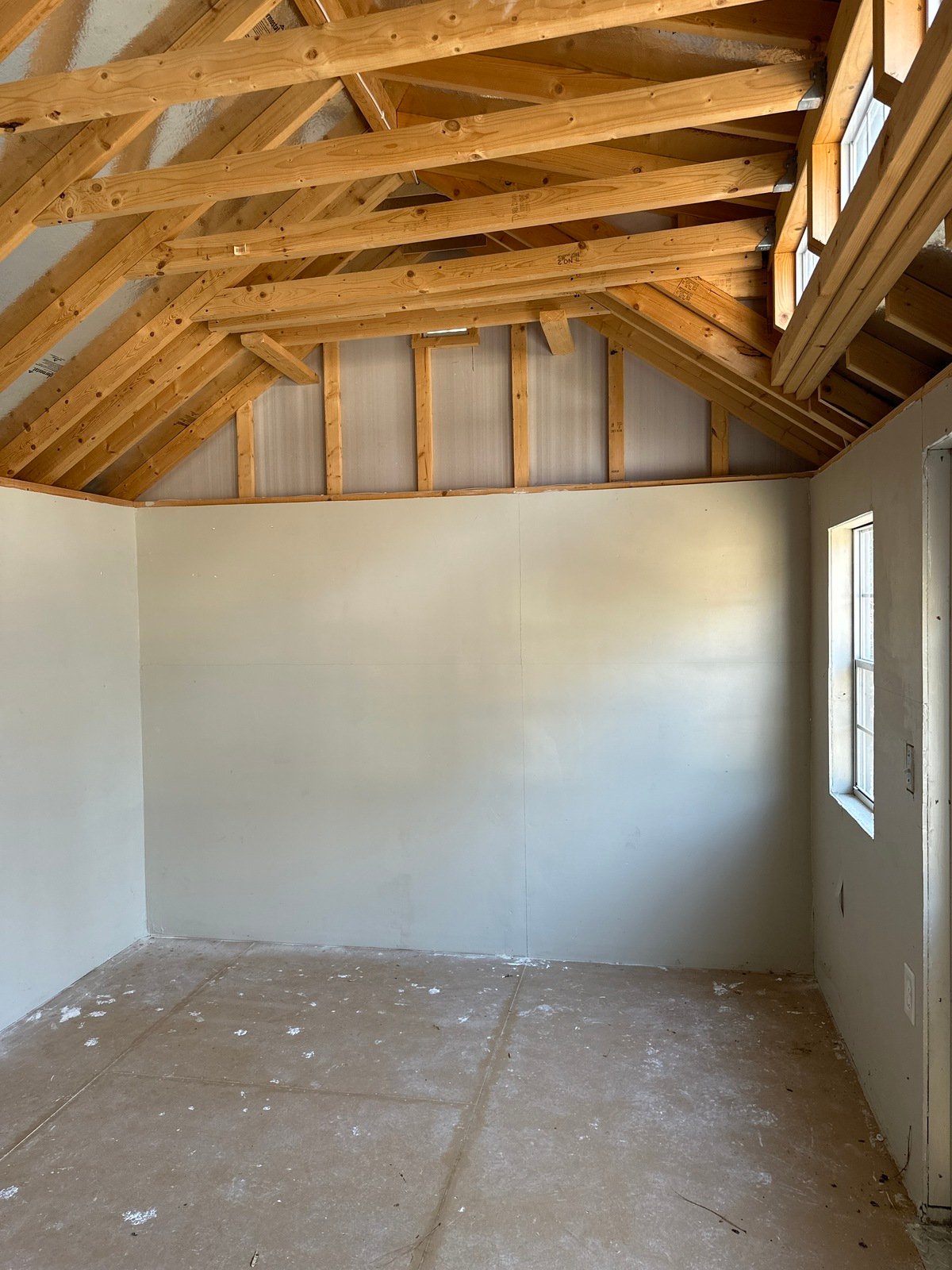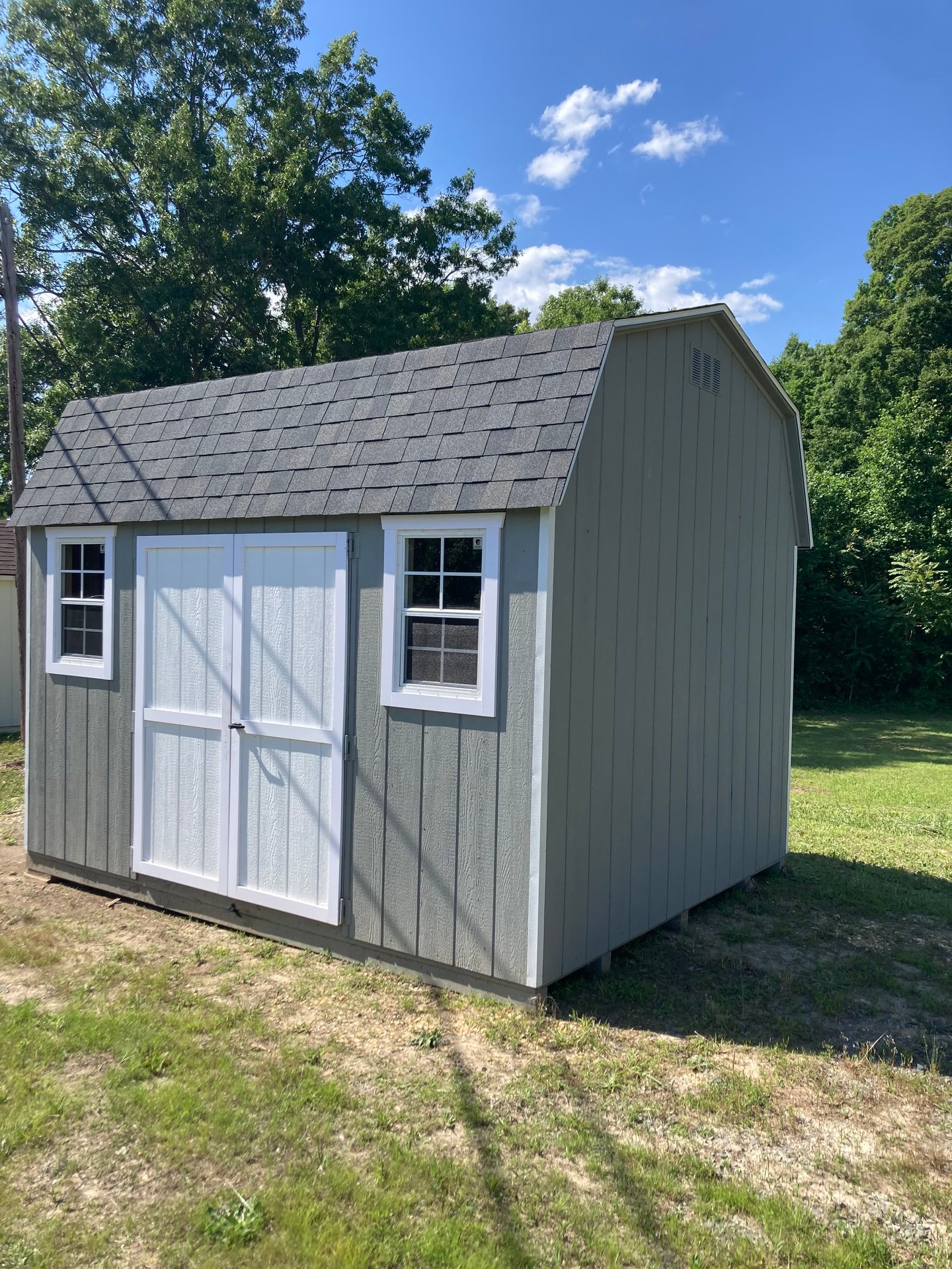???? Style Name: Hi Wall  A-Frame ???? Size: 12X16 ????️ Siding: LP Smart Panel ???? Main Color: Dark Gray ???? Trim Color: White ???? Roof Color: Black ???? Number of Windows: 2 ???? Flooring: 3/4″ LP Prostruct Flooring Included Upgrades: Garden/Transom DD Add 9X7 Overhead Door With Glass uPGRADE (2) 24×36 Windows Add Trim (2) Windows Add (2) Deluxe Garden Vents Add 4′ Deep Loft Add W@orkbench W/ Shelf Below